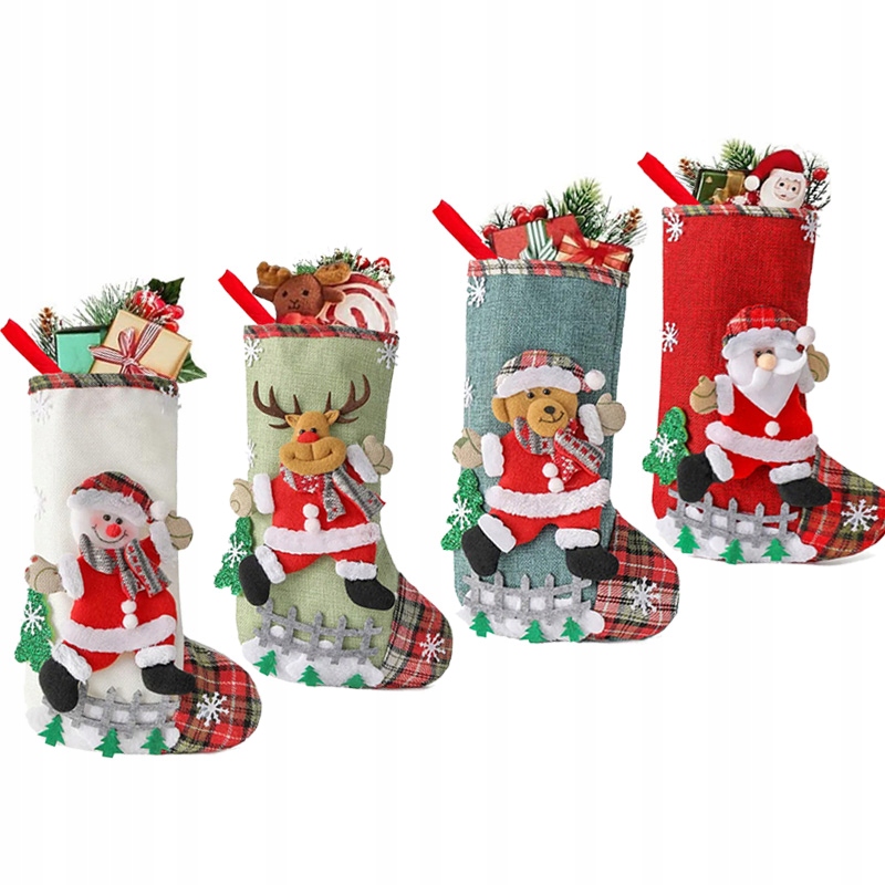 НОСОК ДЛЯ ПОДАРКОВ КАМИН РАЗНЫЕ УЗОРЫ САНТА-РОЖДЕСТВЕНСКИЙ 4ШТ