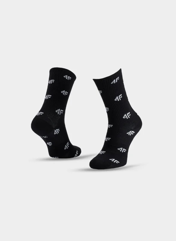 Покрой до середины икрыобеспечивает защиту и комфорт, хорошо сочетаясь как со спортивной, так и с повседневной обувью. Шнурок на манжете удерживает носок в правильном положении, предотвращая его скольжение, а логотип 4F придает им спортивный и современный характер.