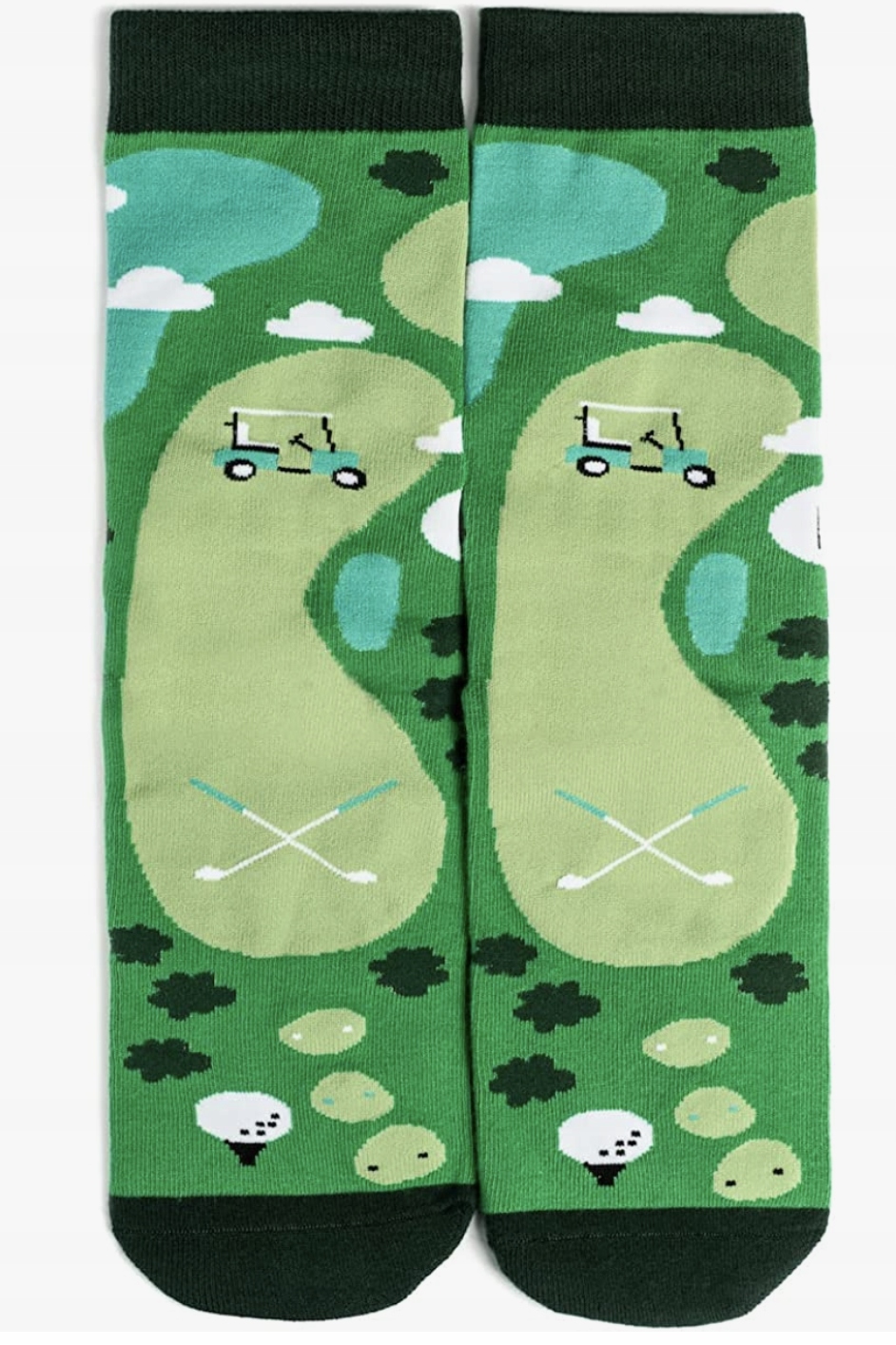 - Оригинальный красочный дизайн с полем для гольфа, гольф-каром и ракетками.