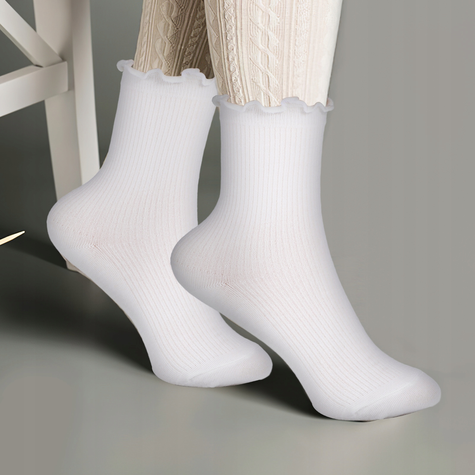 Наденьте наши носки с рюшами, женщины. Эти женские носки чрезвычайно эластичны, поэтому идеально прилегают к ноге и не скользят, обеспечивая комфортное ношение. Носки легко носить, их можно носить отдельно или многослойно, чтобы создать уникальный образ. Высокое качество изготовления и прочные материалы делают их устойчивыми к износу.