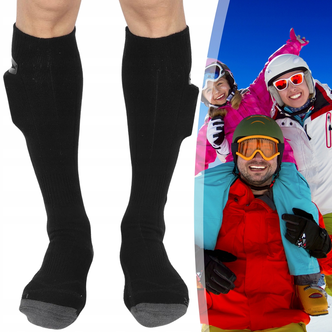 Наши носки с подогревом универсальны, подходят на размеры от 36 до 44. Гольфы, доходящие почти до колен, согреют не только ступни, но и икры. Благодаря им вы получите удовольствие от походов, катания на лыжах или прогулок в зимние дни.