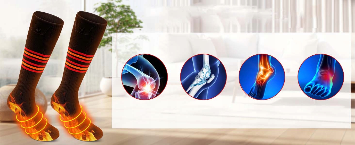 Эти носки с подогревом для мужчин и женщин помогают согреть ноги, улучшить кровообращение, облегчить боль и предотвратить обморожение. Они также идеально подходят для людей с синдромом Рейно, артритом голеностопного сустава, хронической простудой и тугоподвижностью суставов. Будь то подарок на Рождество, день рождения или просто на холодный зимний день, эти носки с подогревом станут трогательным подарком для родителей, друзей, близких или коллег.
