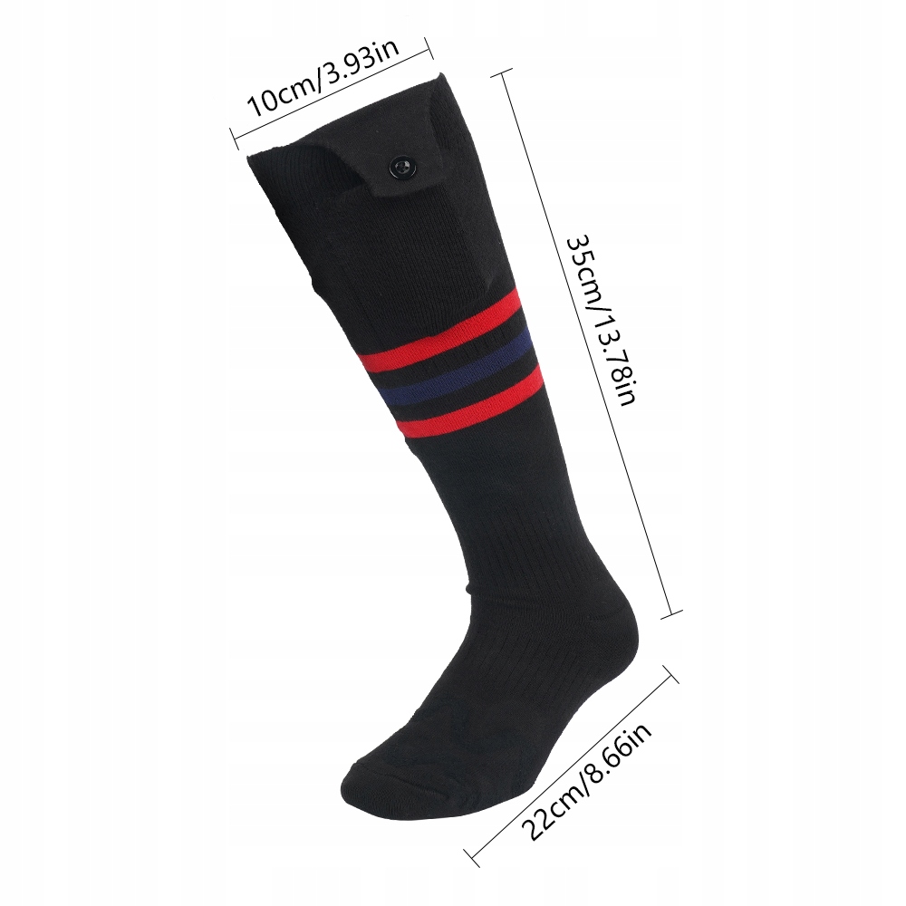 ✔️Универсальные носки с подогревом (подходят для размеров 41–46), очень гибкие, эластичные и подходят для любой формы стопы. Носки имеют маркировку с левой и правой стороны, что облегчает их надевание и снятие. В комплект входит карман для батареек с кнопкой, которая предотвращает их выпадение во время ходьбы или бега. Черный цвет универсален и его можно сочетать со спортивной и элегантной обувью, ботильонами и сапогами-велингтонами.