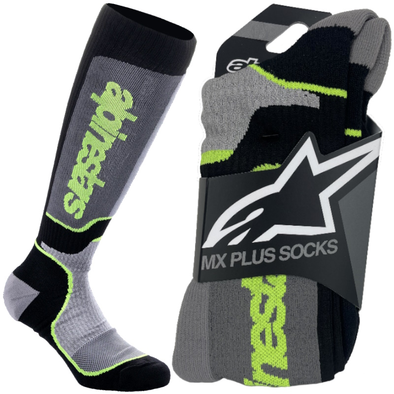 Шкарпетки ALPINESTARS MX MX PLUS Чоловічі чорні/флуоресцентні/сірі M
