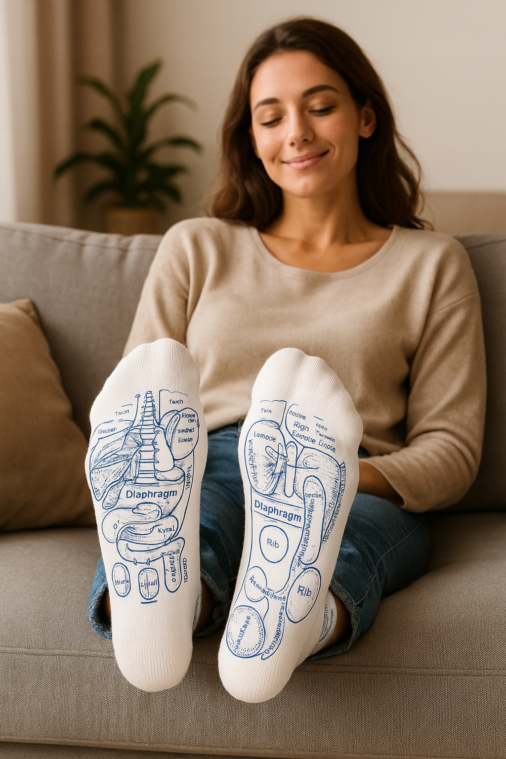 Каждый носок содержит четкие маркировки акупунктурных очков, поэтому вы можете легко нажать именно там, где вам нужно. Это массаж с картой, встроенной в ткань!