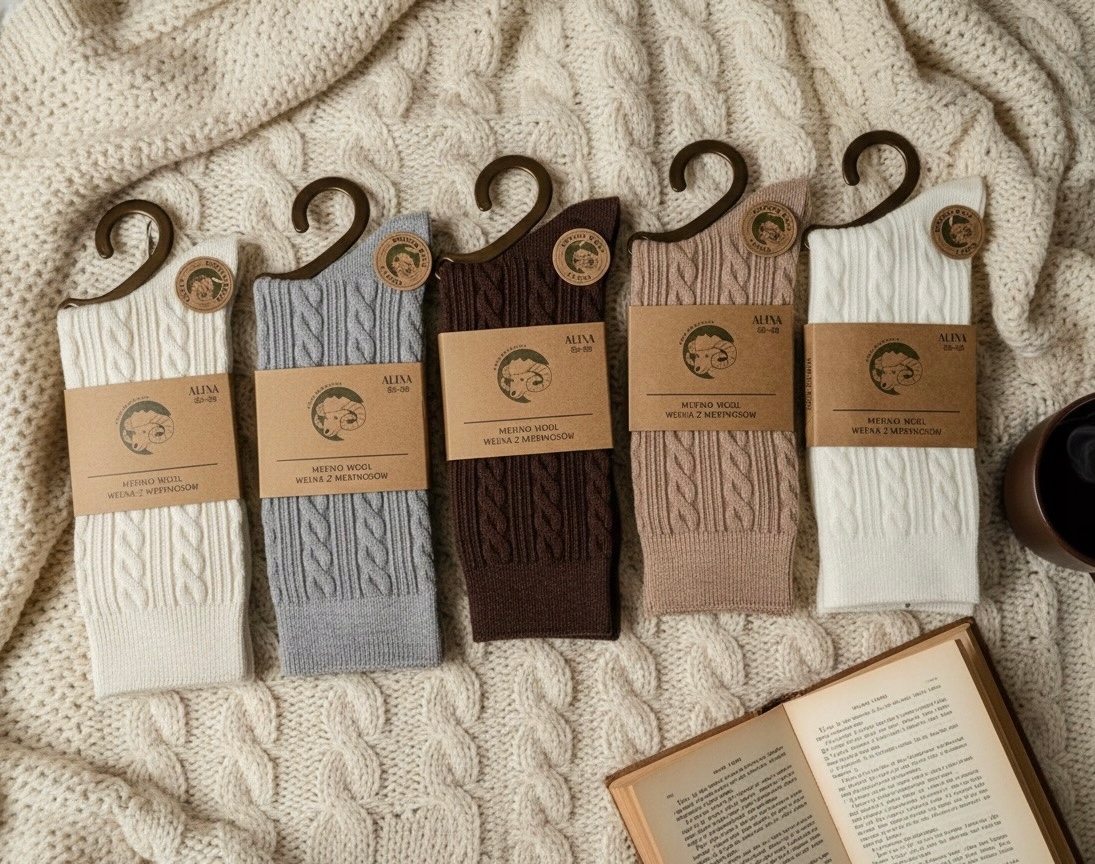 ШКАРПЕТКИ ЖІНОЧІ МЕРИНОС ВОВНА АЛІНА КОСИ ТЕПЛІ