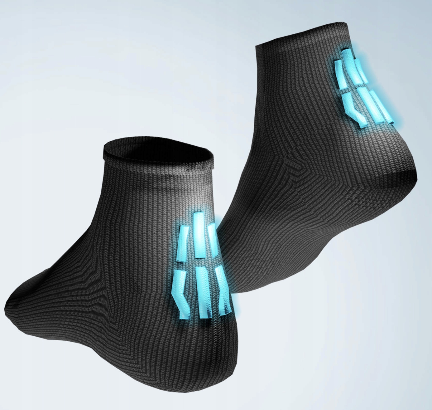 Поглощает удары и защищает чувствительное ахиллово сухожилие благодаря трехмерному трикотажу.