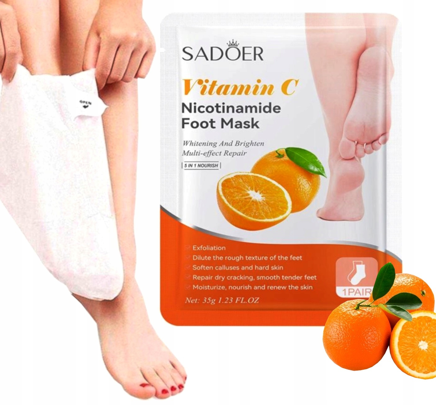 Носки, отшелушивающие увлажняющуюся маску для ног с витамином С + ниацинамидом