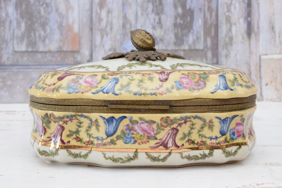 Шкатулка Bomboniera Art Nouveau Wonderful Porcelain + Bronze Vintage Floral Theme
