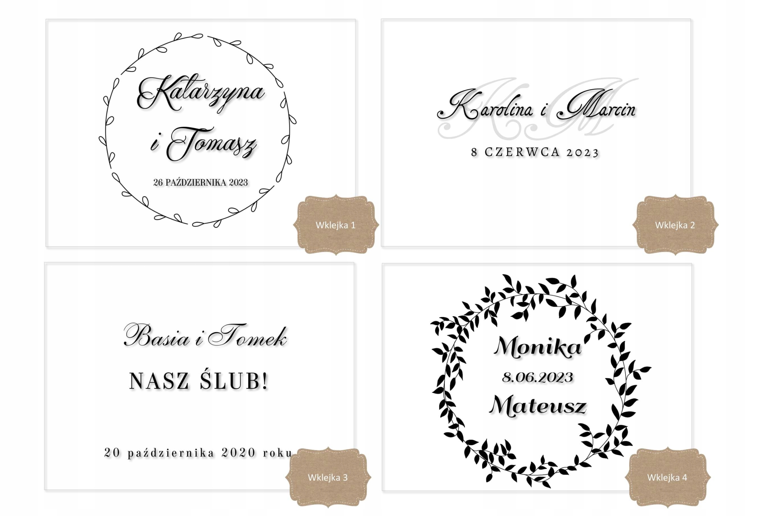 - Пример заказа: натуральное сердечко, белая наклейка, рисунок наклейки 1, имя Касия и Томек, 09.12.2022