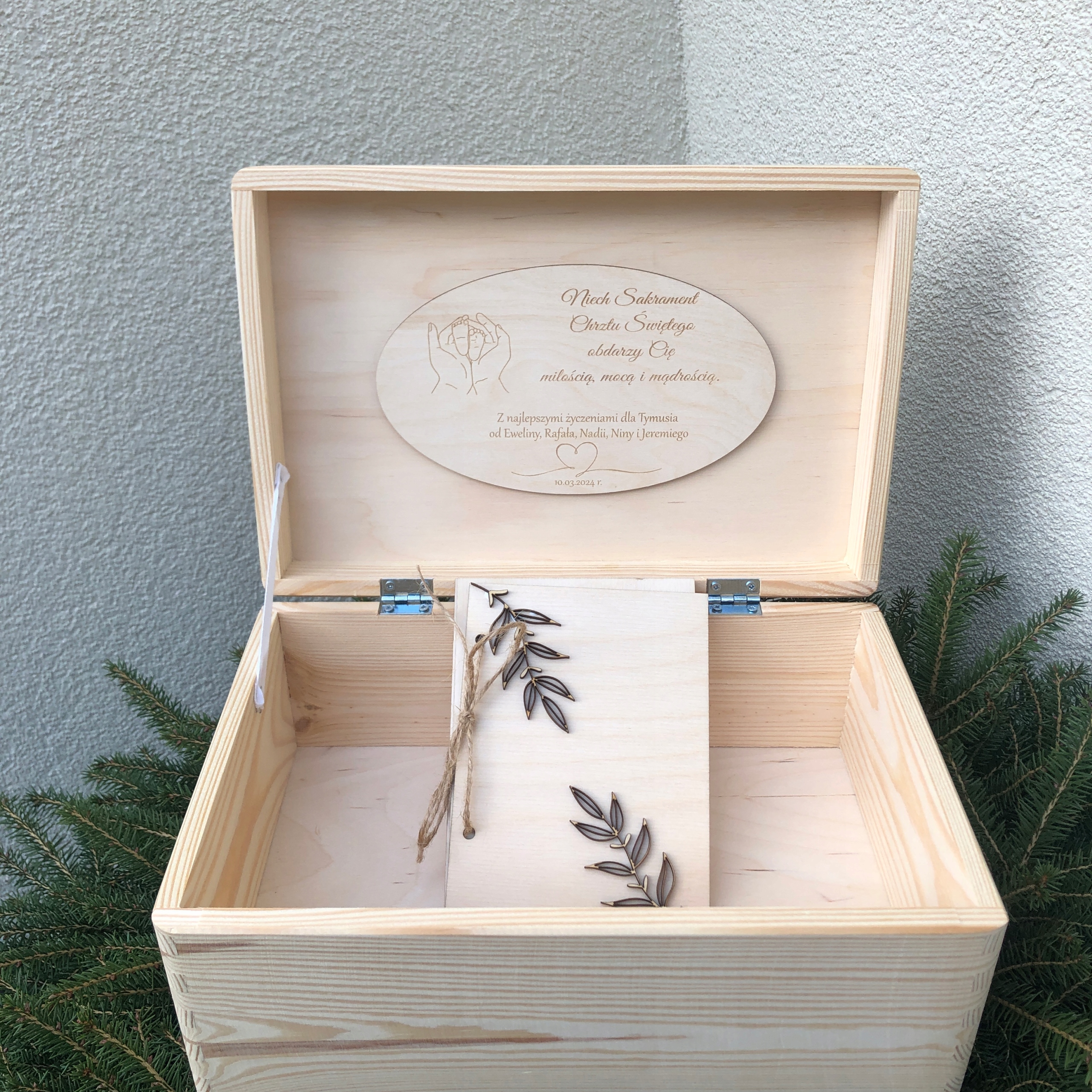 Крестильная коробочка с гравировкой и пожеланиями со свидетельством о рождении