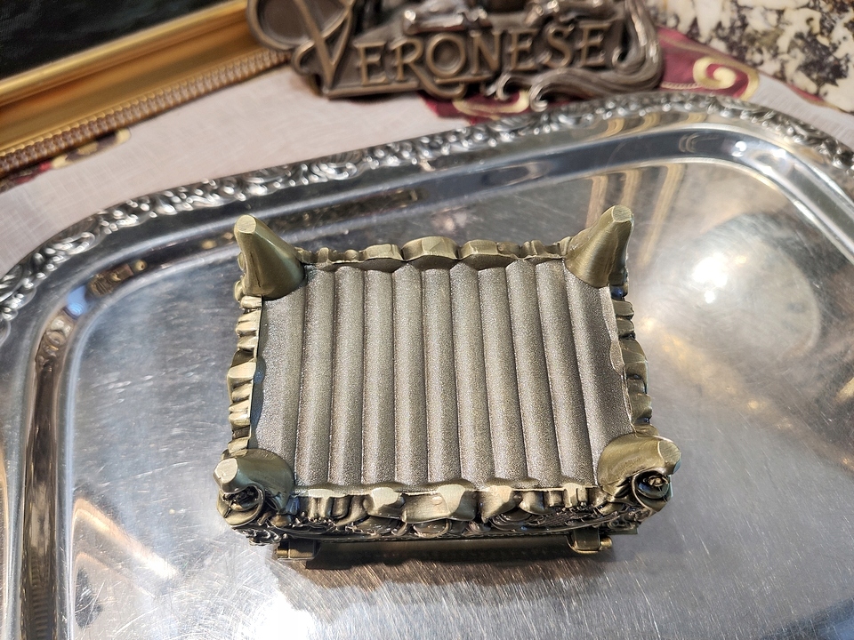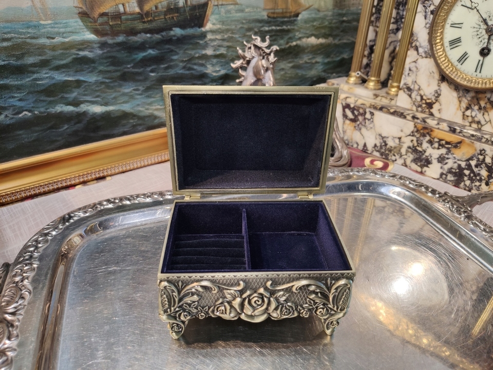 Приглашаю Вас приобрести красивую шкатулку в стиле барокко, чрезвычайно богато украшенную мотивами роз. Изготовлен из цинкового сплава, покрыт латунью цвета старого золота. Тяжелый и прочный.