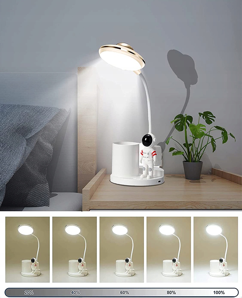 Настольная лампа для детей отображает большую площадь, что приводит к изменению цвета звезд и луны на стенах и потолке. Это вызывает чувства дискомфорта, избегая усталости глаз и уменьшая давление в глазах. Он имеет 3 уровня яркости Например, ручки или другие гаджеты, благодаря которого на столе ребенка будет больше беспорядка