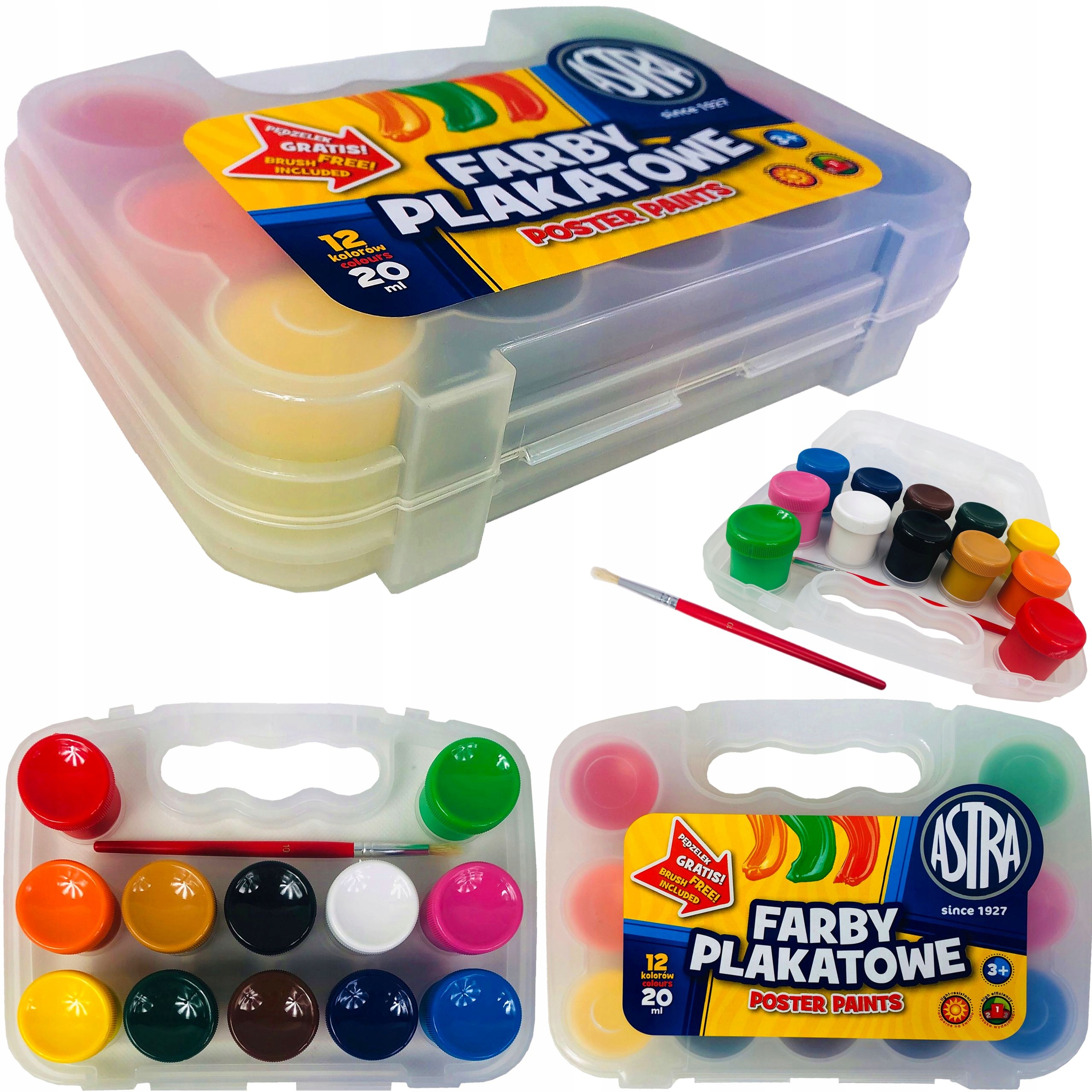 Школьные краски для плакатов ASTRA 12 cols 20ml чемодан
