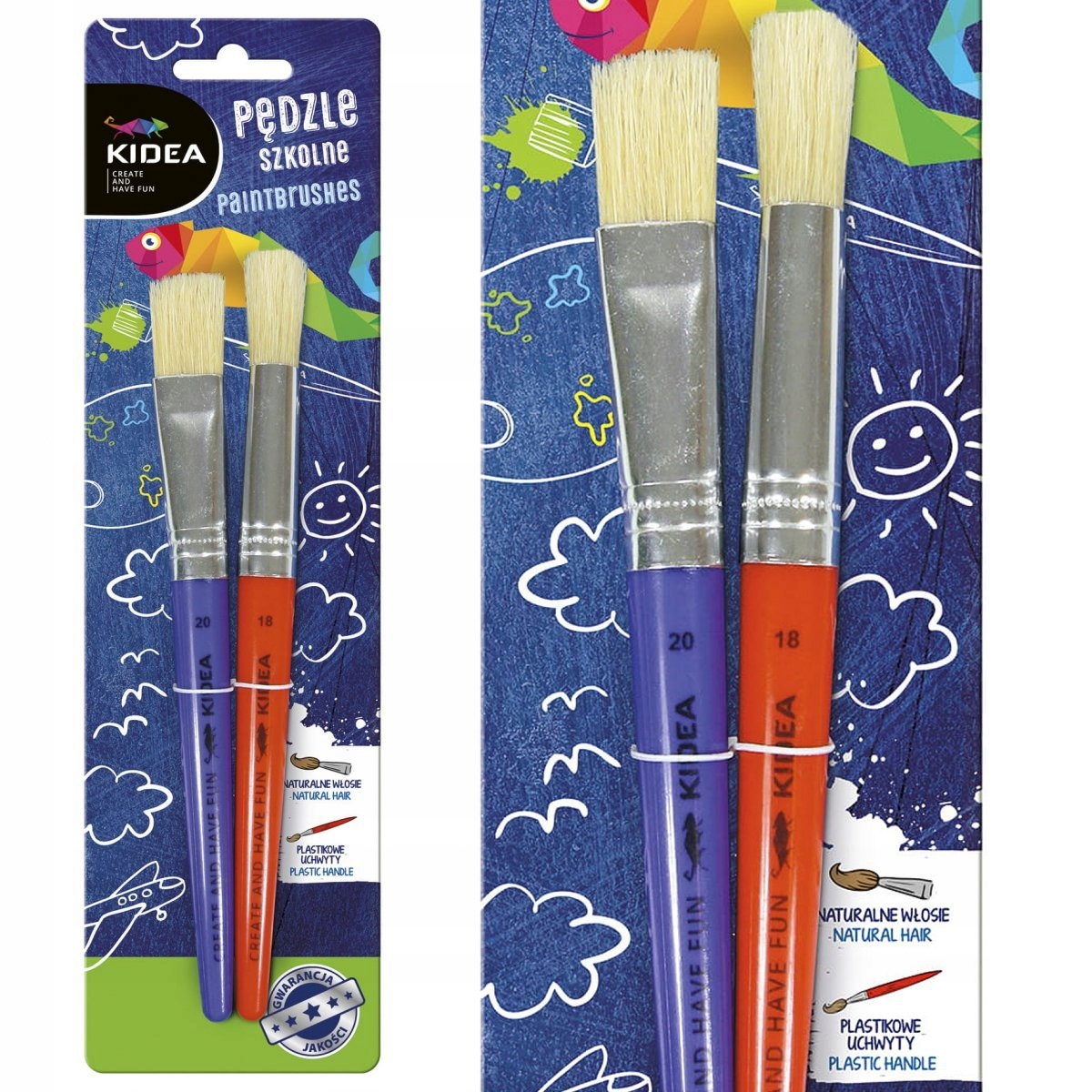 Школьные кисти 2 шт. ТОЛСТЫЕ KIDEA