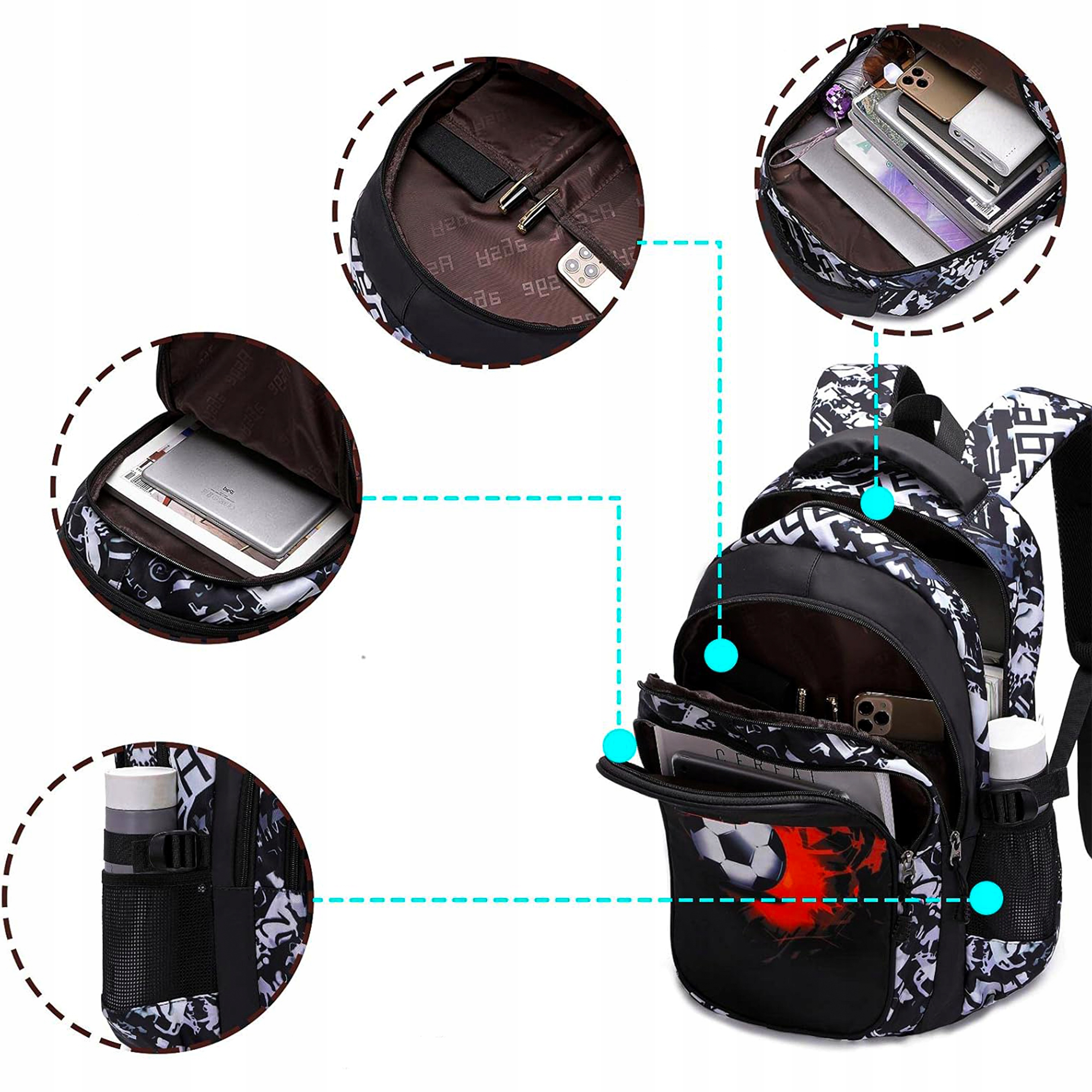 ✅Многоотделенный, вместительный рюкзак для футбольного болельщика - прочный и дополнительно усиленный