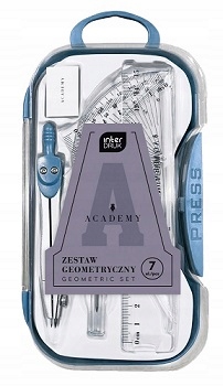 Набор с геометрическими фигурами в практичном и прочном футляре с застежкой-кнопкой, обеспечивающей безопасное хранение и переноску.