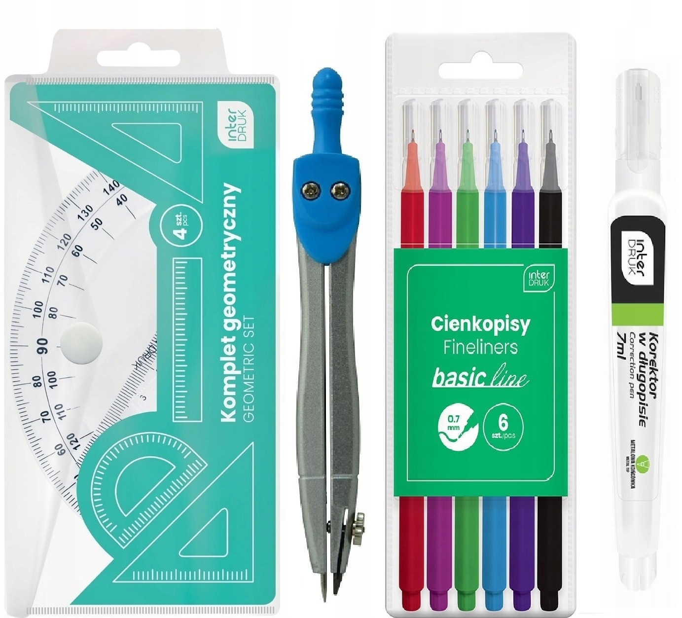 - Геометрический набор из 4 элементов (Линейка, 2 квадрата, Транспортир) -Интерпринт,