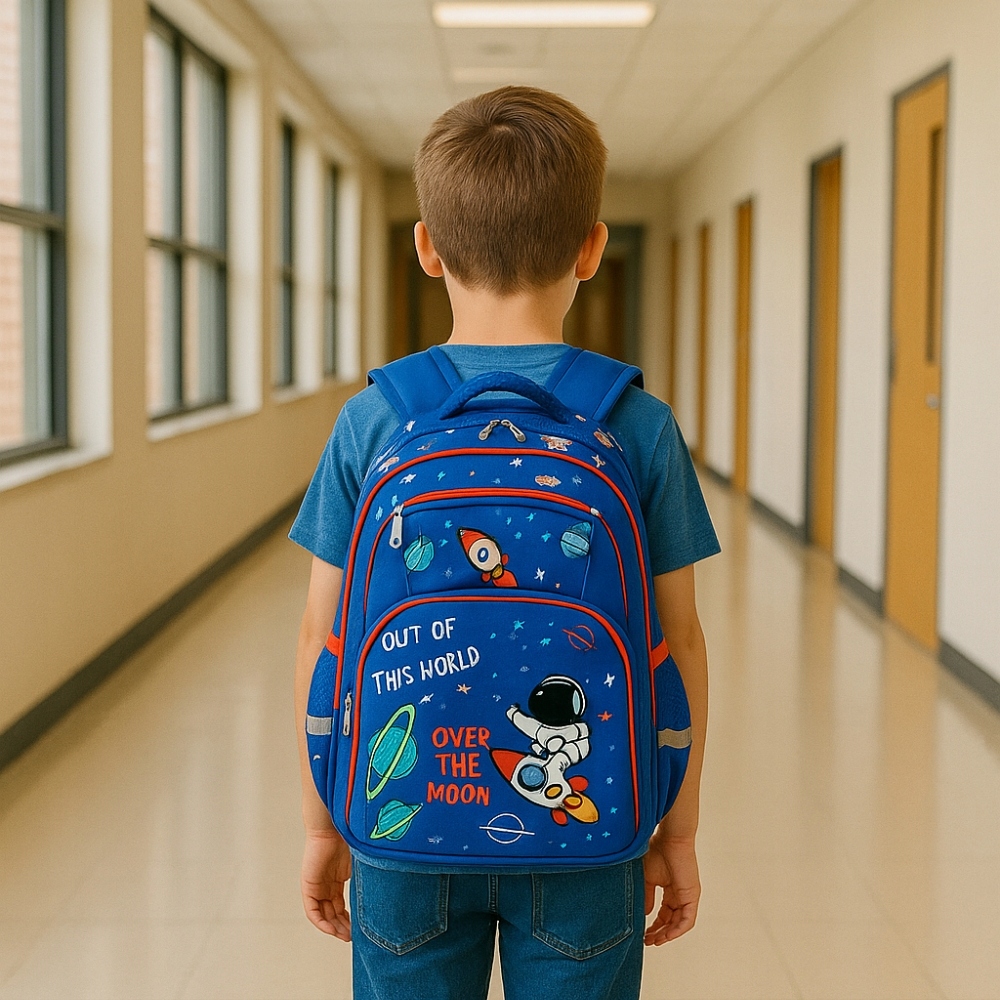 ⭐plecak Szkolny Z Motywem Kosmosu, W Niebieskim Kolorze Z Wzorami Rakiet, планета I Gwiazd для Spełnienie Marzeń Dla Każdego Małego Fana Kosmicznych Przygód. Функциональный, удобный и легкий рюкзак, который разместит все необходимые вещи в школу.