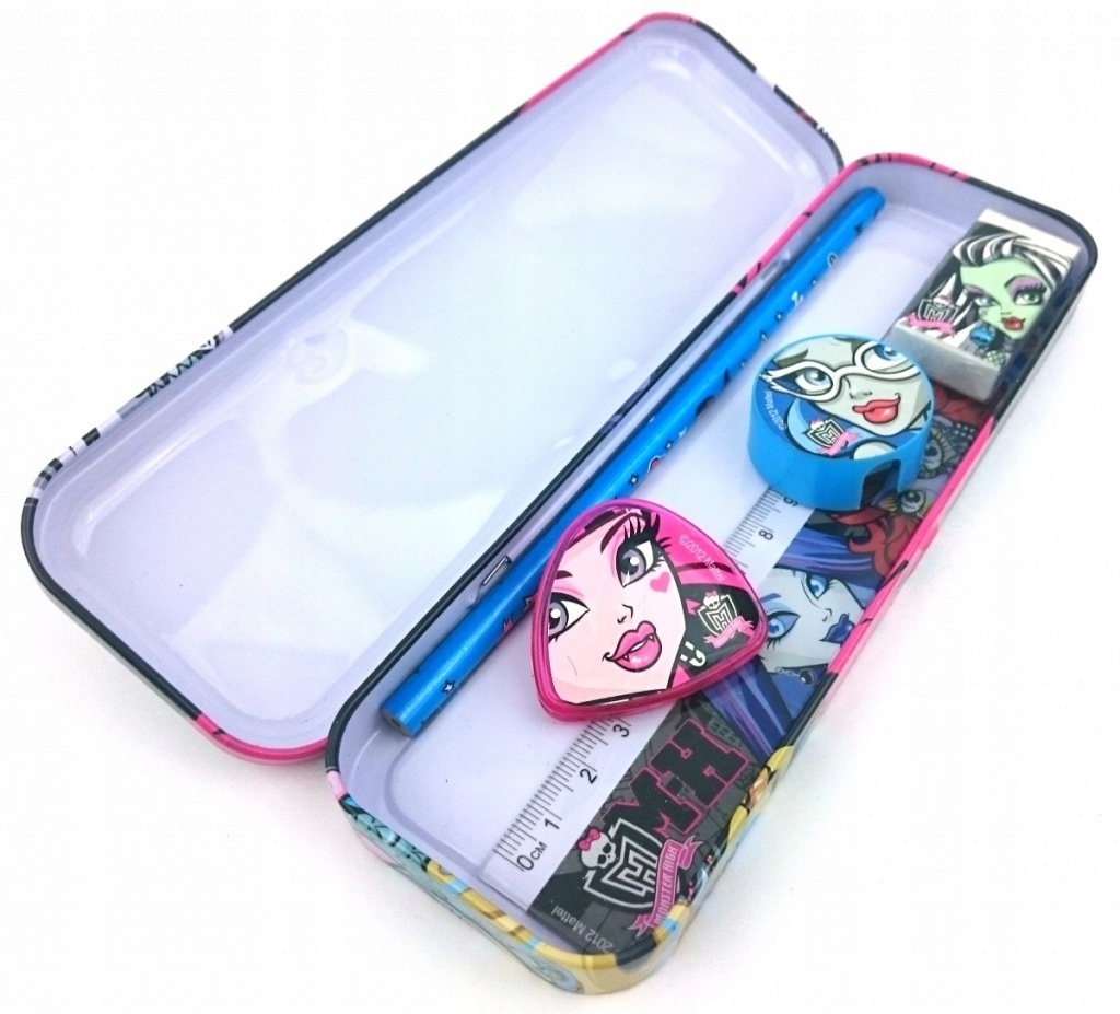 - Металлический пенал (21 см х 7 см х 2 см): Прочный и долговечный, отлично защищает все канцелярские принадлежности от повреждений. Его вместительность позволит хранить не только элементы набора, но и другие любимые ручки или мелки. Дизайн с мотивом Monster High придает ему характер.
