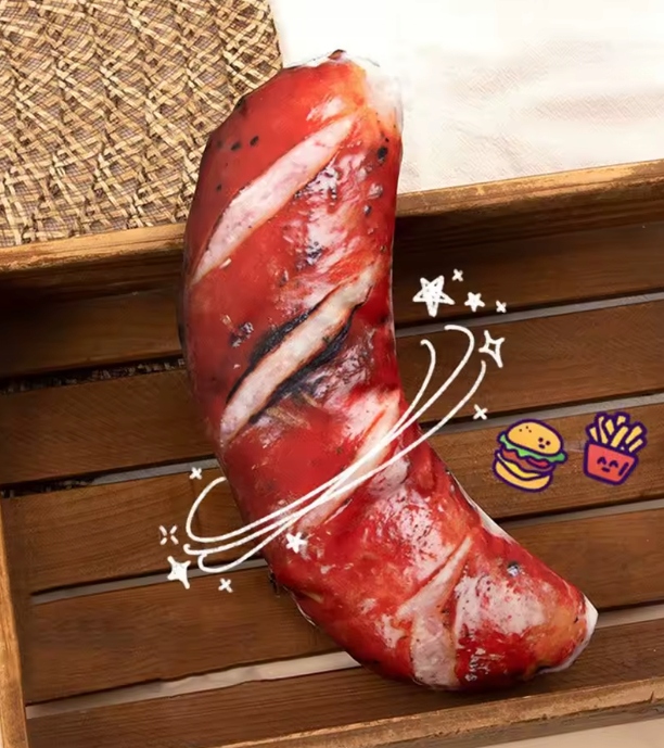 - Необычный дизайн - он выглядит как настоящая сочная колбаса для гриля
