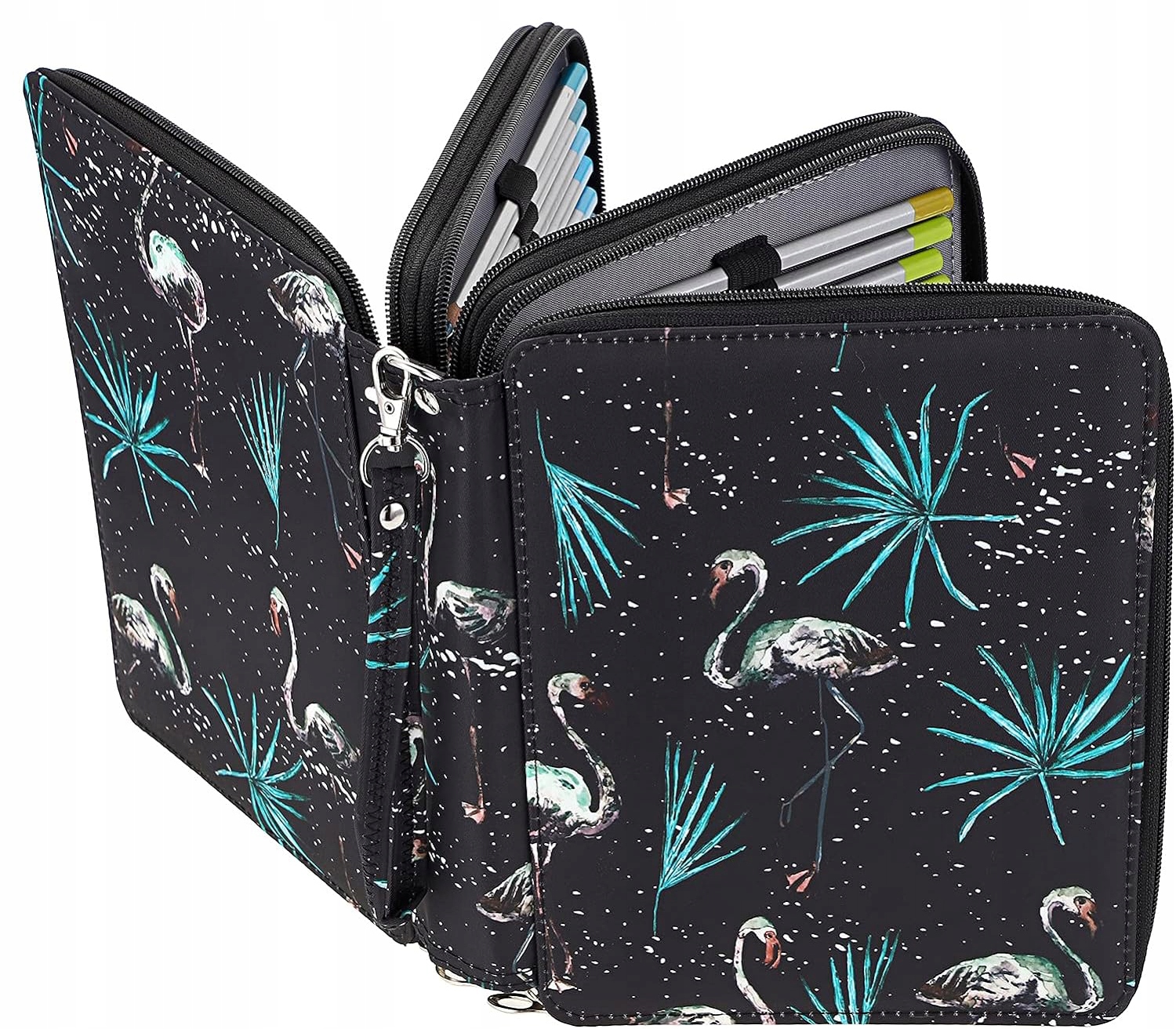 ✅ Декоративный дизайн с изображением фламинго повышает привлекательность пенала и придает ему художественный вид.