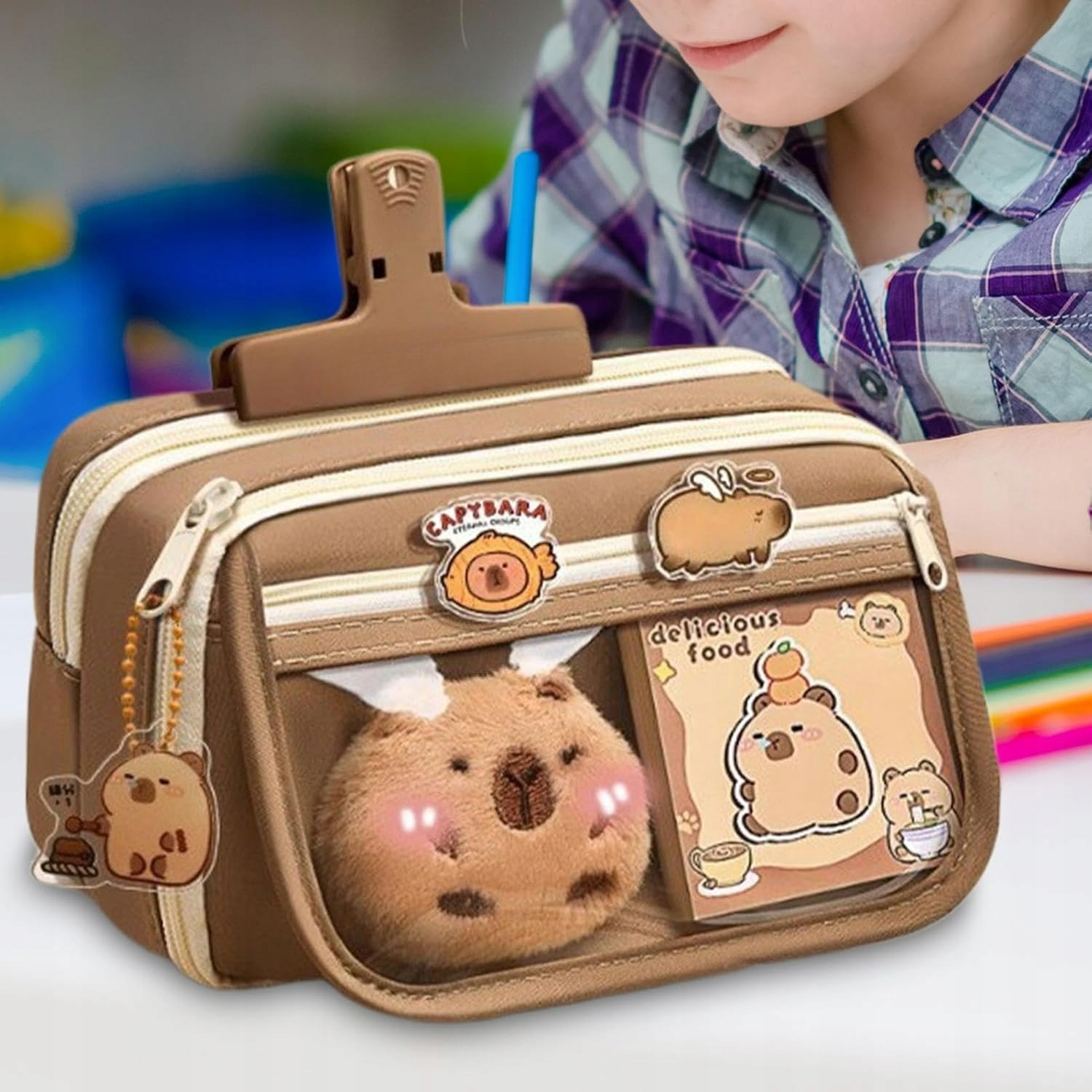 ЧЕХОЛ ДЛЯ ПЕНСИБАР БОЛЬШОЙ ВМЕСТИТЕЛЬНОСТИ С МОТИВОМ КАПИБАРРА, СУМКА ДЛЯ ДЕТСКИХ ШКОЛЬНЫХ ПРИНАДЛЕЖНОСТЕЙ, ПРОЧНЫЙ, грязеотталкивающий, УЧЕБНЫЙ НАБОР, МИЛЫЙ УЗОР КАПИБАРРА