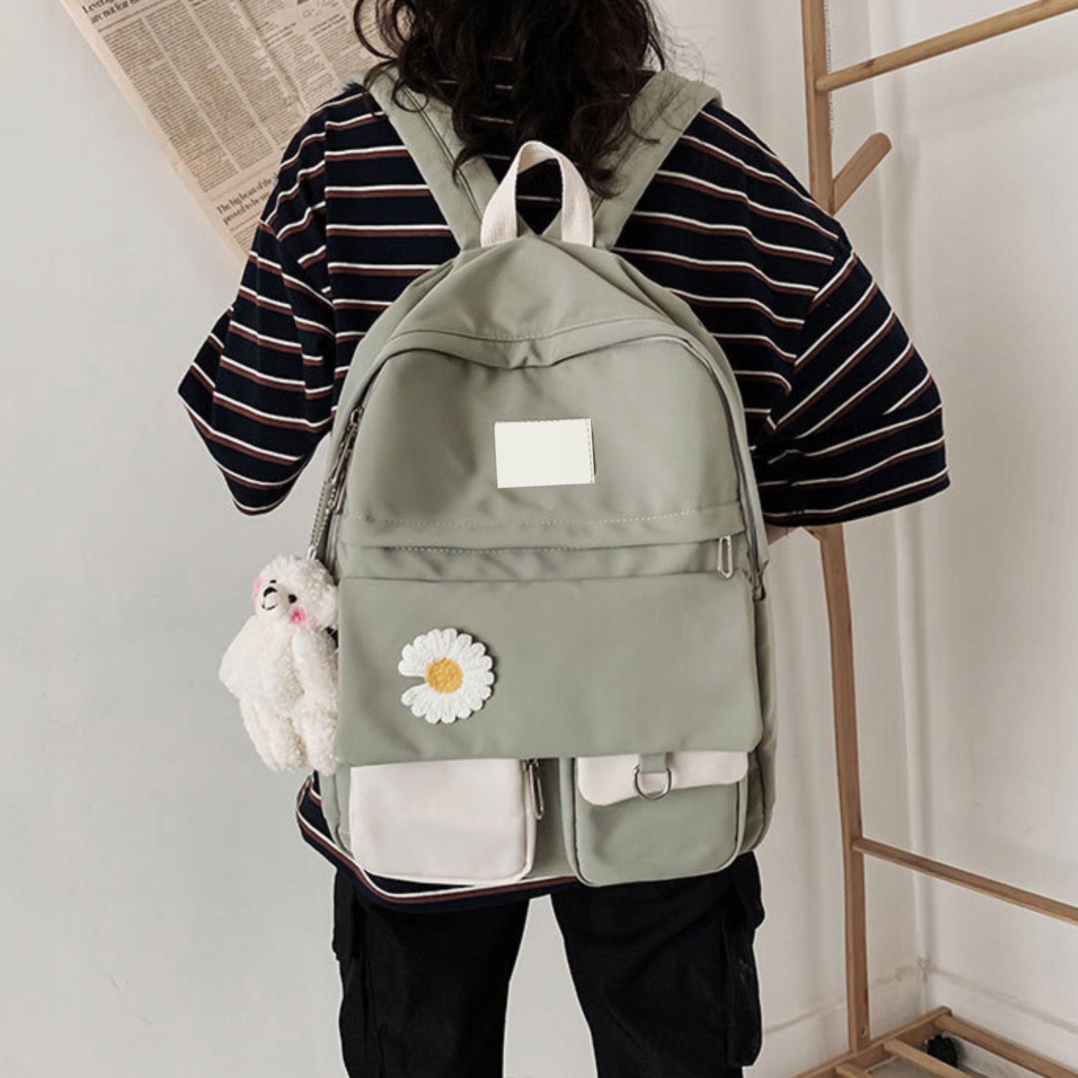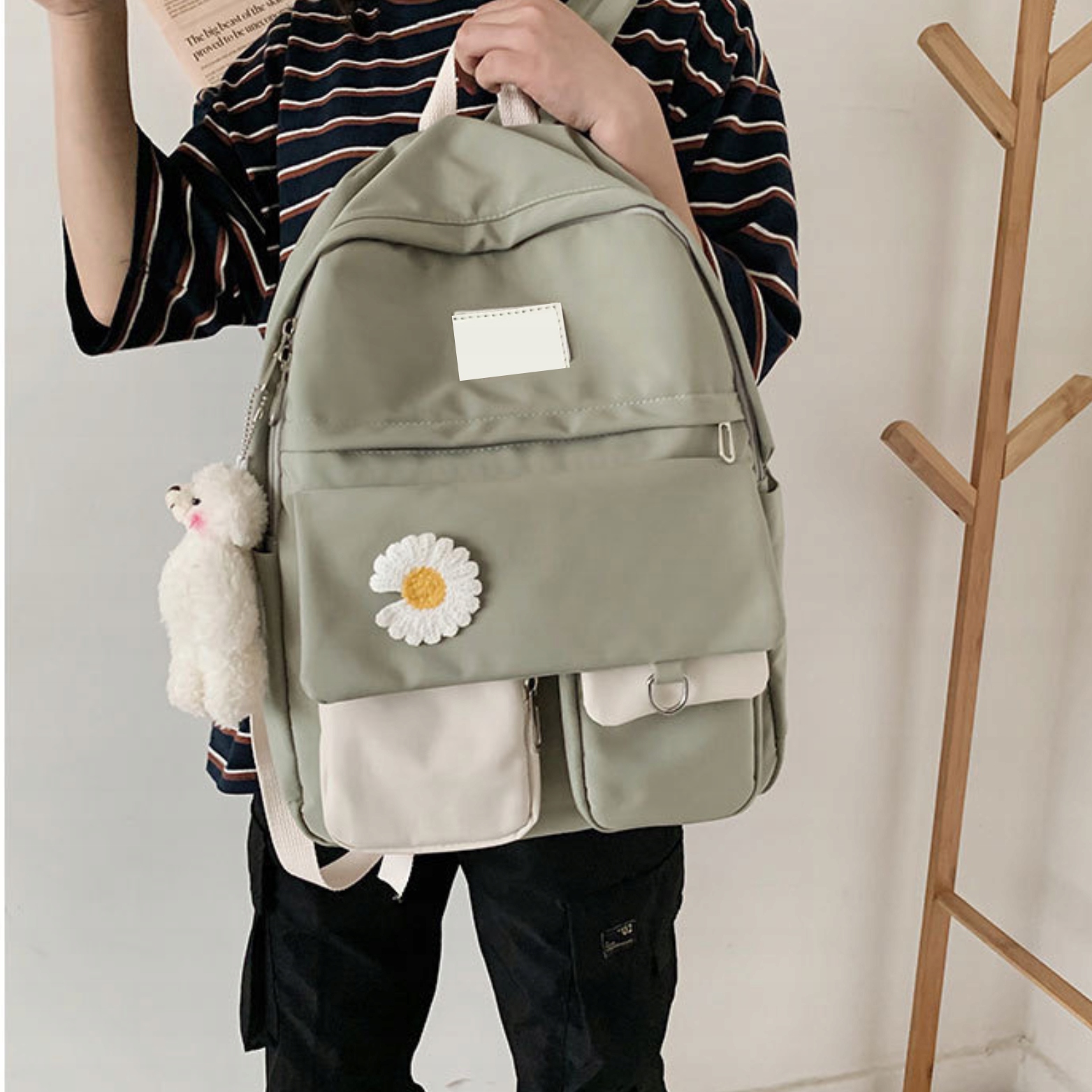 Школьный рюкзак молодежный набор штифтов набор для подростков h1> Flower Stokrotka h2> ✅ Школьный рюкзак + пакал + плюш -бревень -медвежь рюкзак , молодежь , Женский, город , идеально подходит для школы, поездок, в отпуске,