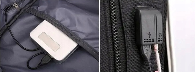 🔌С внешней стороны рюкзака имеется специальный USB-разъем, к которому можно подключить powerbank и разместить его внутри рюкзака. Благодаря этому вы можете удобно заряжать телефон или другие мобильные устройства прямо в рюкзаке - без необходимости открывать молнии и вытаскивать аксессуары.
