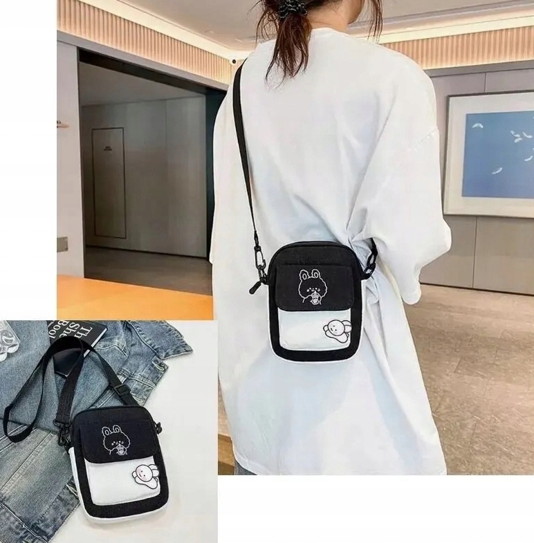 Маленькая черно-белая сумка для плеч с очаровательным пятном-отличный выбор каждый день. Идеально подходит для школы, для университета, поездки или встречи с друзьями-это будет размещать самые важные мелочи, такие как телефон, кошелек или ключи, и в то же время добавит стиль любой стилизации.