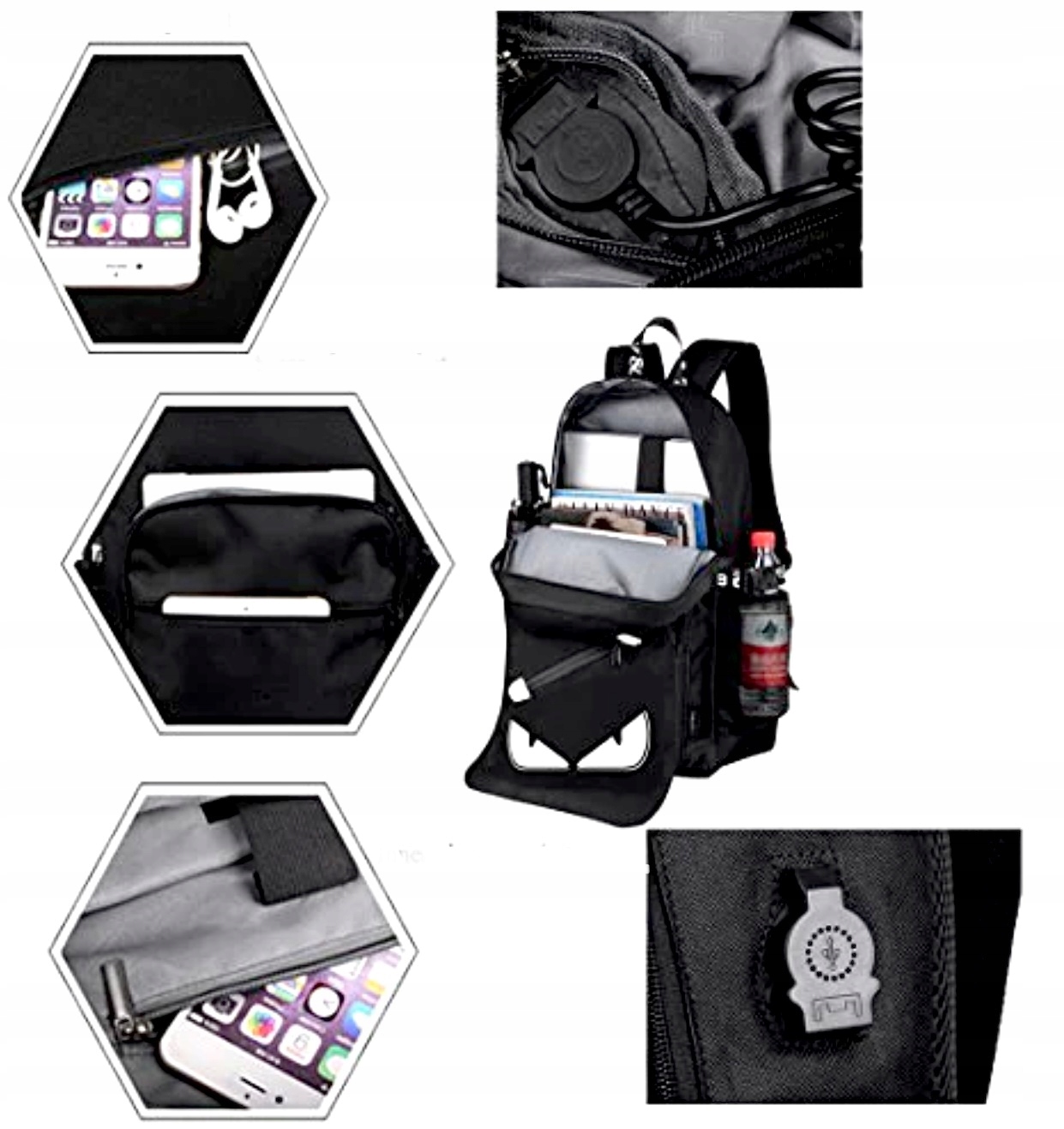 Рюкзак оснащен внешним USB-портом — просто вставьте в рюкзак powerbank и подключите его к USB-разъему, а порт, расположенный снаружи рюкзака, станет отличным источником зарядки телефона или других подобных устройств,