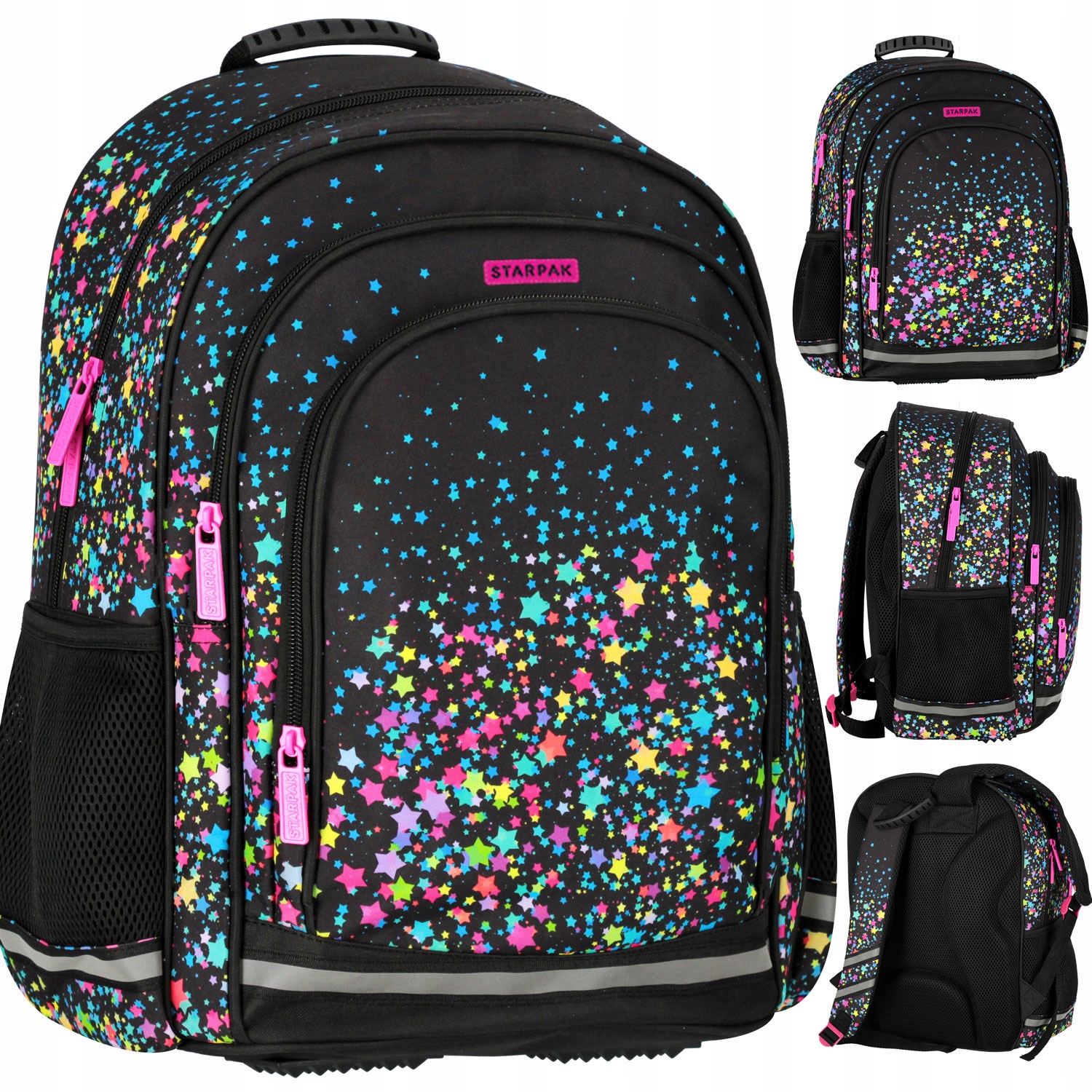 Самая важная часть рюкзака для здоровья ребенка - это брекеты и спины. Благодаря эргономичным решениям, рюкзаки Starpak гарантируют безопасность и комфорт использования. Задняя часть была оборудована вентиляционной системой. Специально разработанная форма воздушного канала увеличивает комфорт и гигиену использования, даже когда становится горячей. Брекеты толстые и мягкие. Благодаря этому даже тяжелый рюкзак Starpak удобен. Чтобы увеличить комфорт и лучшую влагу, спина была покрыта сетчатой тканью. Брекеты, конечно, могут быть скорректированы. Это позволяет вам соответствовать рюкзаку с ростом и телом ребенка. Мы положили полосы на передний карман, с обеих сторон рюкзака и на брекеты. Благодаря этому ребенок будет лучше видим для водителей и велосипедистов вечером или после наступления темноты.