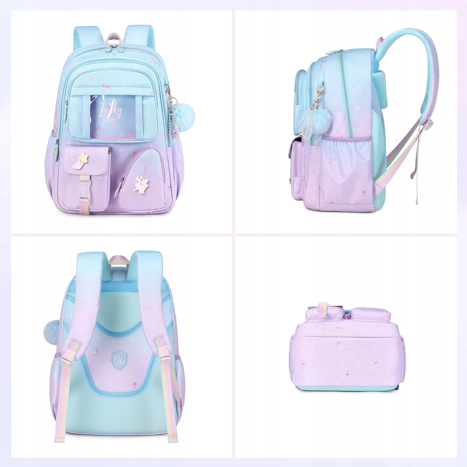 💜🌸🎀 ШКОЛЬНЫЙ РЮКЗАК RAINBOW ДЛЯ ДЕВОЧЕК 1–3 КЛАССОВ + АКСЕССУАРЫ