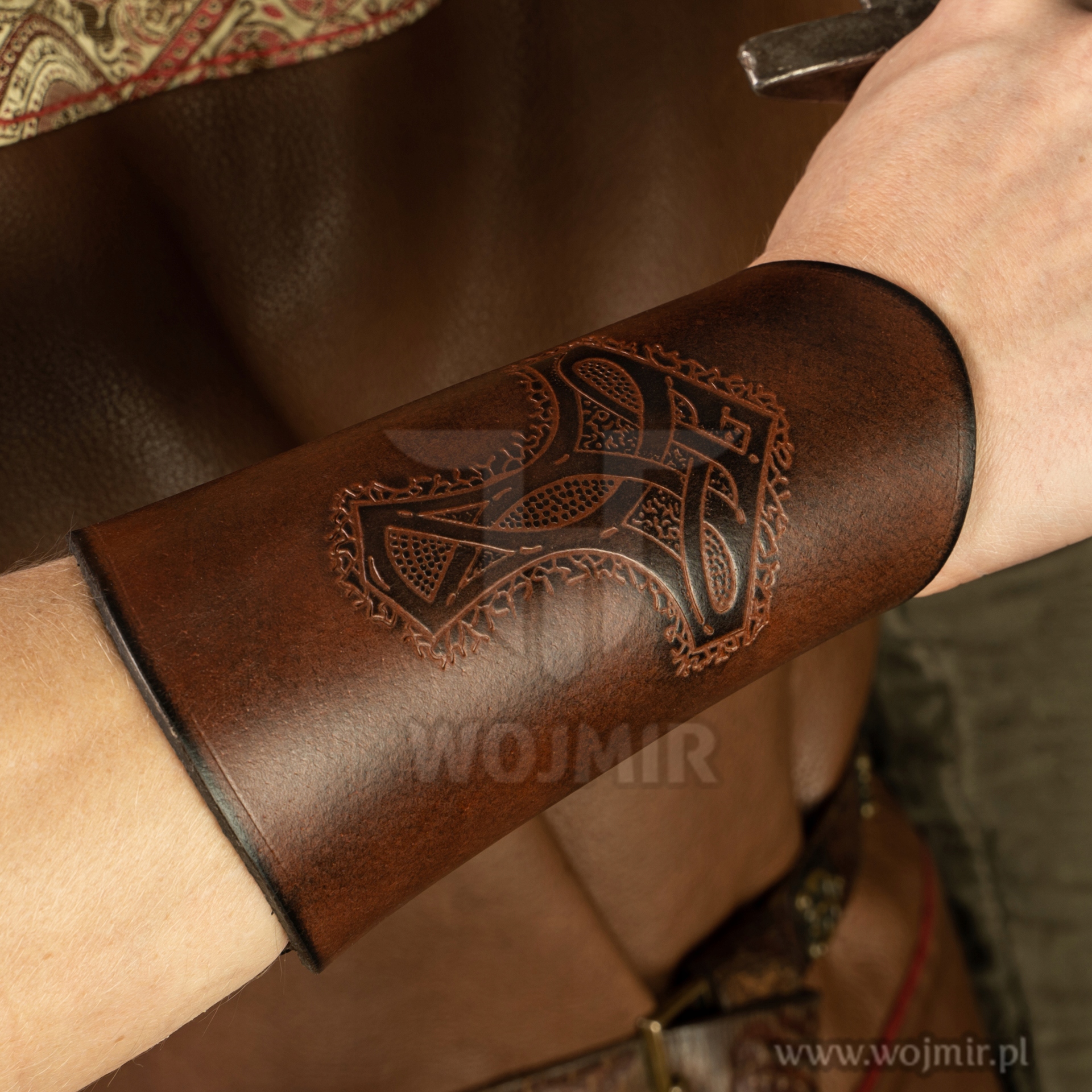 Шкіряна наруча з молотом Тора тип 6 для лучника, ларпа, косплея від Wojmir