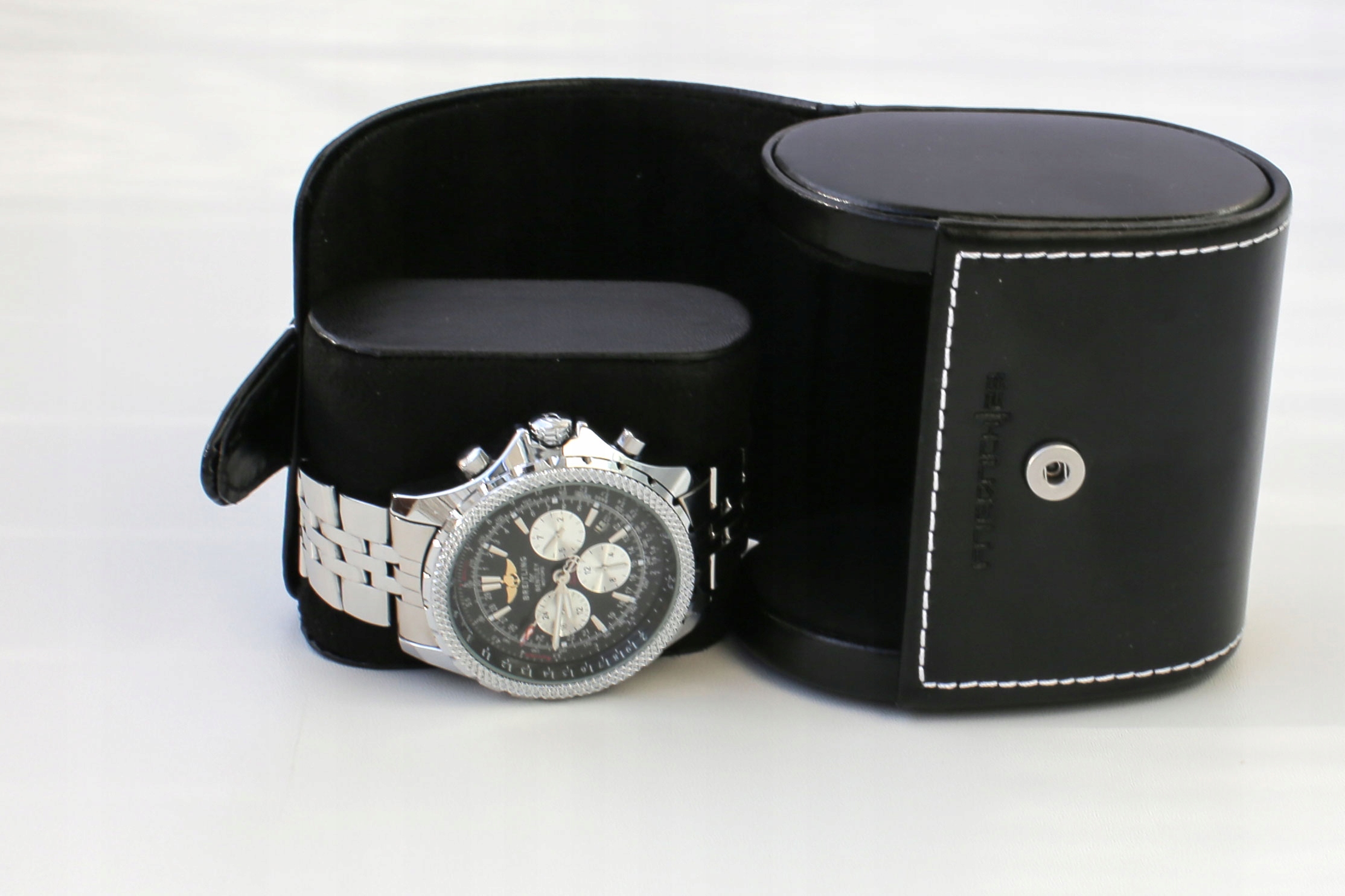 Корпус путешествий - кожа для 1 «Лондон». Черная натуральная кожа - зерно. Очень хорошее качество продукта. Сделано вручную: чрезвычайно тщательно и с большим вниманием к деталям. Сделано в Германии - Фридрих/23. Это также подходит для супер больших часов (FI 60).