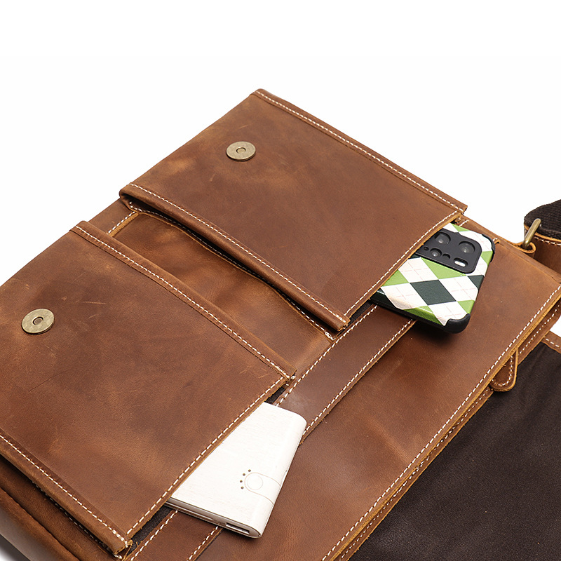 Шкіряна сумка через плече для чоловічої сумки для ноутбука коричневого кольору