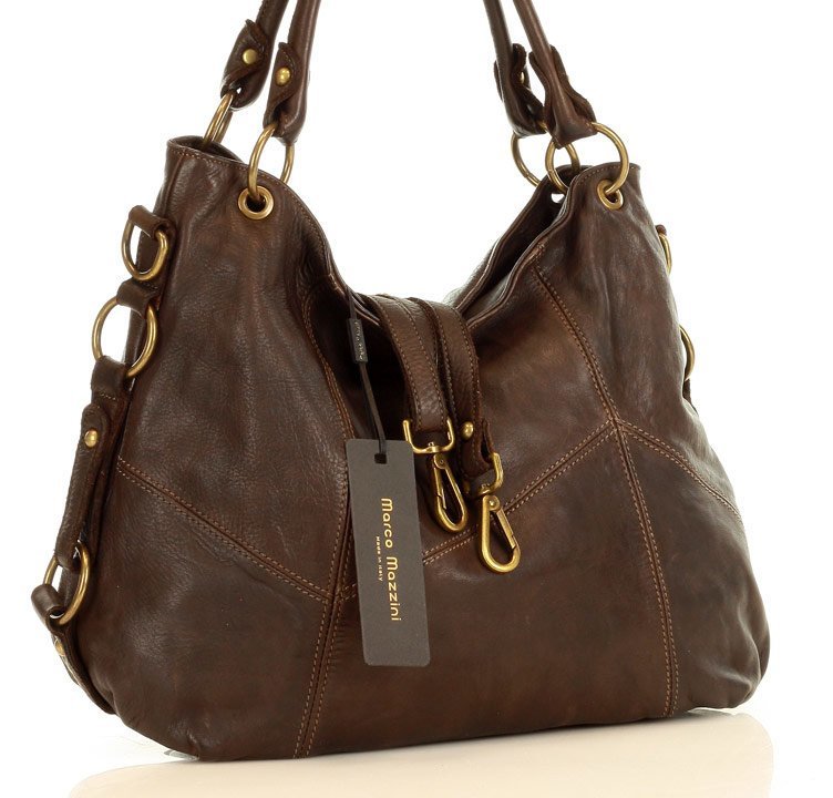 MARCO MAZZINI City кожаная сумка на плечо ручной работы коричневая, кафе
