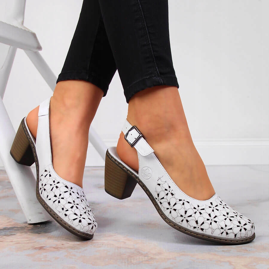 Кожаные сандалии с открытыми классами белые Rieker 40981-80 40