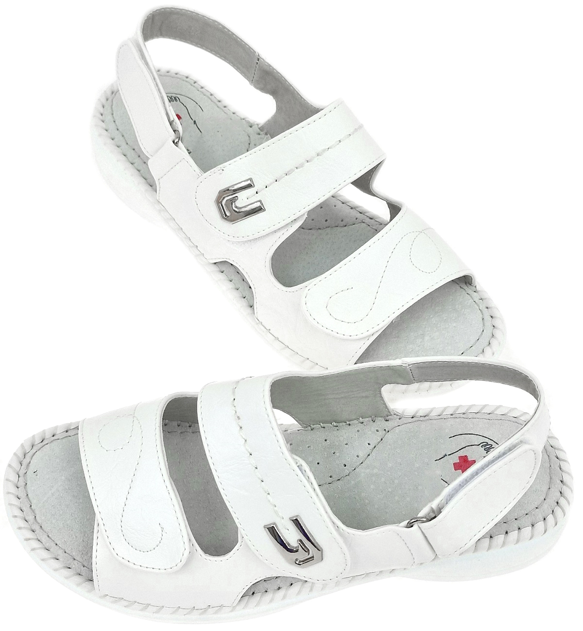 Кожаные сандалии липучка женщин Медицинские тапочки 39