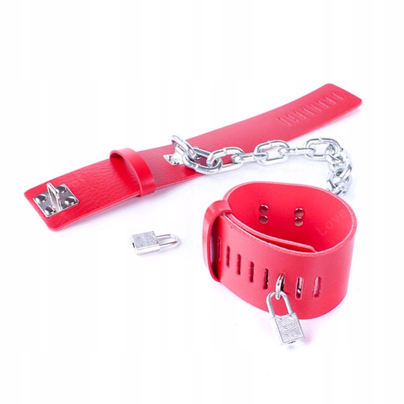 Кожаные красные черные наручники для ног