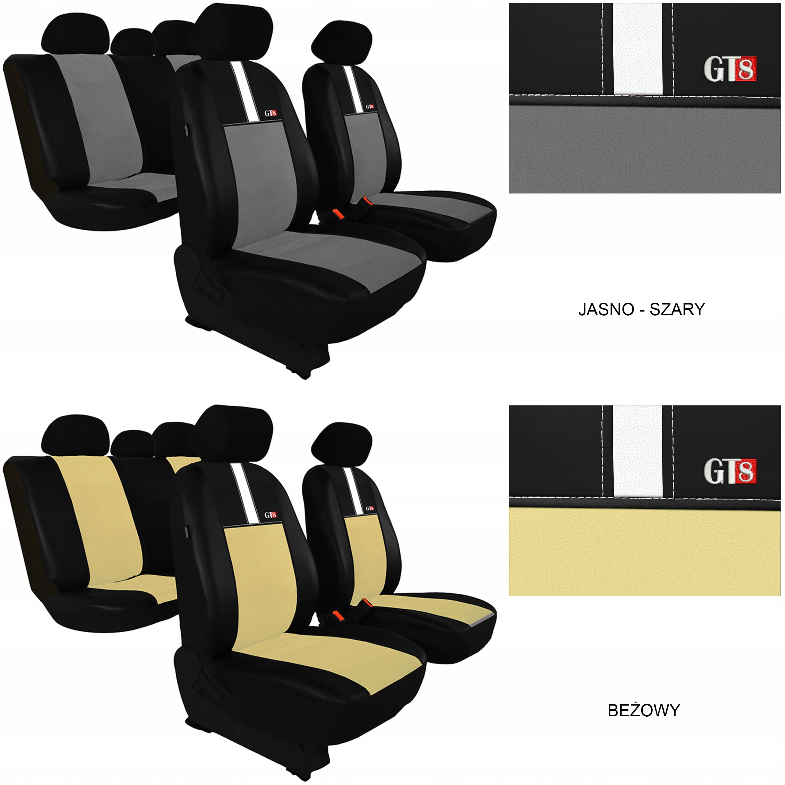 Универсальные чехлы GT8 — это сочетание высококачественных материалов с необычайной точностью исполнения. Прочная, водонепроницаемая и устойчивая к истиранию экологическая кожа в сочетании с высококачественным материалом Аликанте придает чехлам классический и элегантный вид. Широкий выбор цветов для среднего ремня позволяет создать оригинальное покрытие. Передние сиденья дополнительно украшены эстетичной вышивкой и строчкой, придающей уникальный характер.