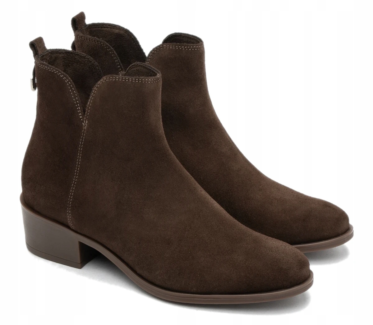 КОЖАНЫЕ ЖЕНСКИЕ КОВБОЙСКИЕ БОТИНКИ, ТЕМНО-КОРИЧНЕВЫЕ, ИЗ КОЖИ RYŁKO 39