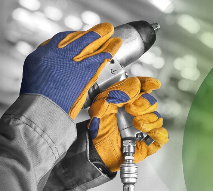 - специальной защитной перчатки из спилка говяжьей кожи,
