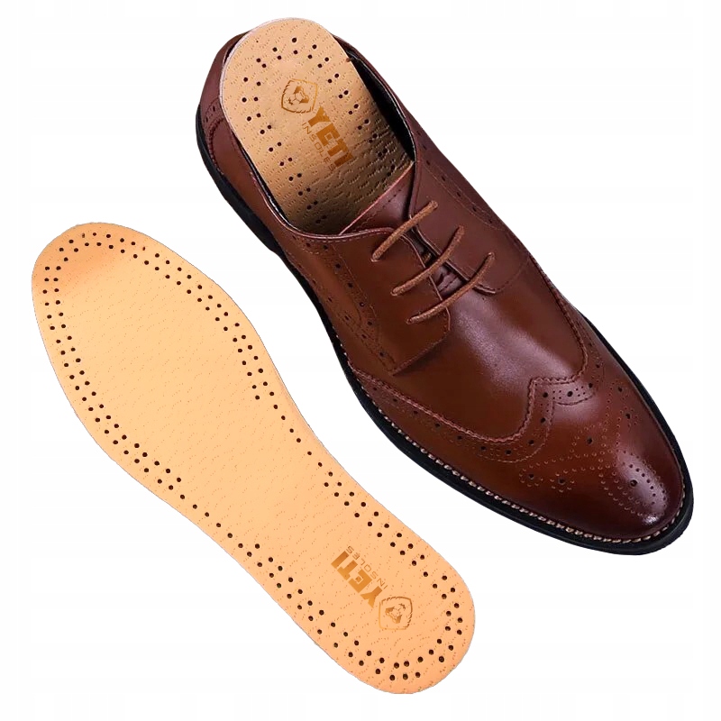 Кожаные вставки для обуви из натуральной кожи в сочетании с перфорированной латексной пеной, содержащей активный уголь-антиперспирант. Стельки бренда Yeti Insoles обладают антибактериальными свойствами и рекомендуются людям с чрезмерной потливостью ног.