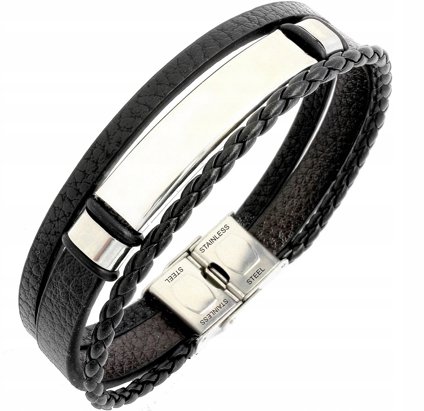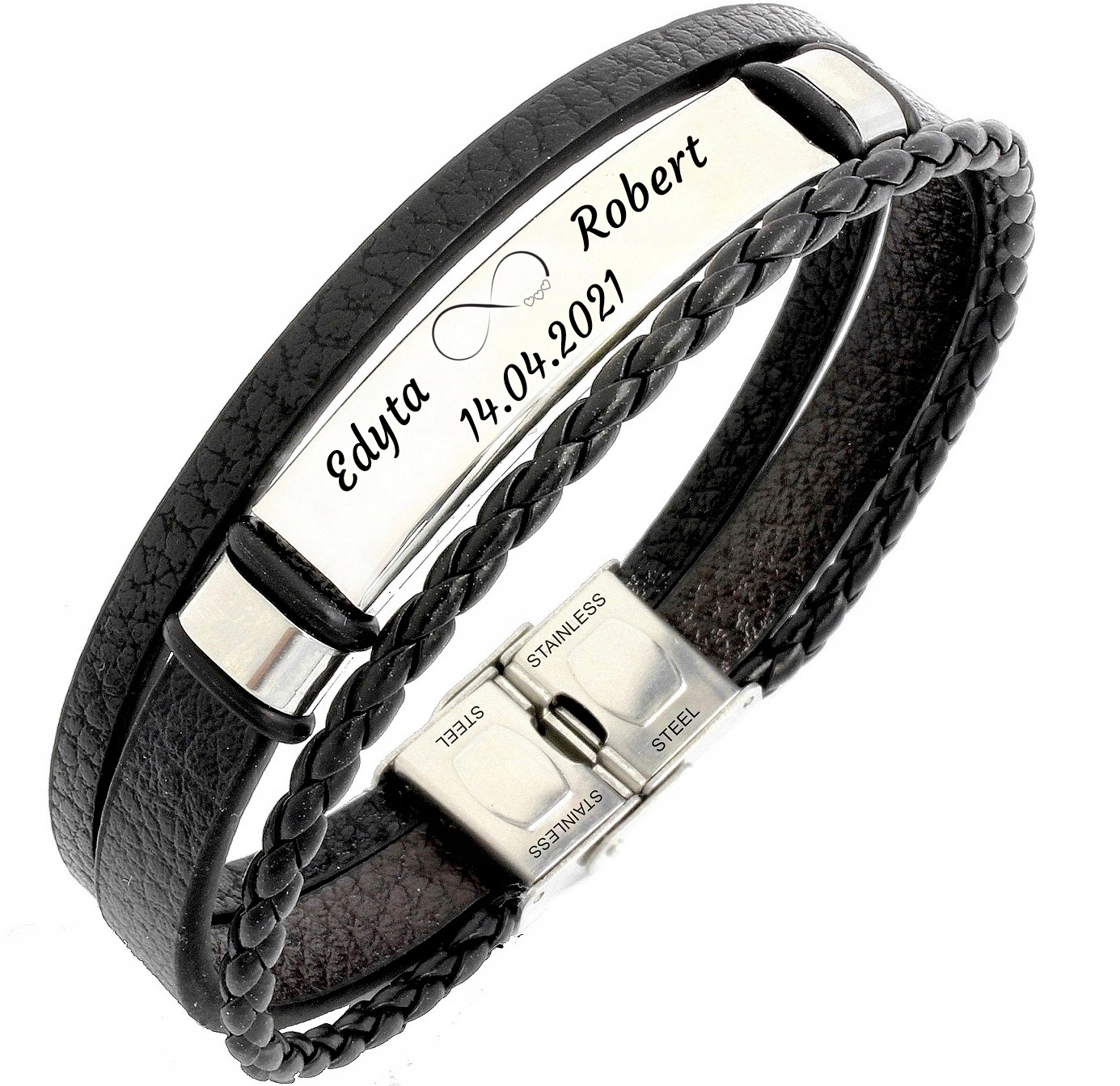 Шкіряний браслет для ЧОЛОВІКА з ГРАВІЮВАННЯМ сталь 316L