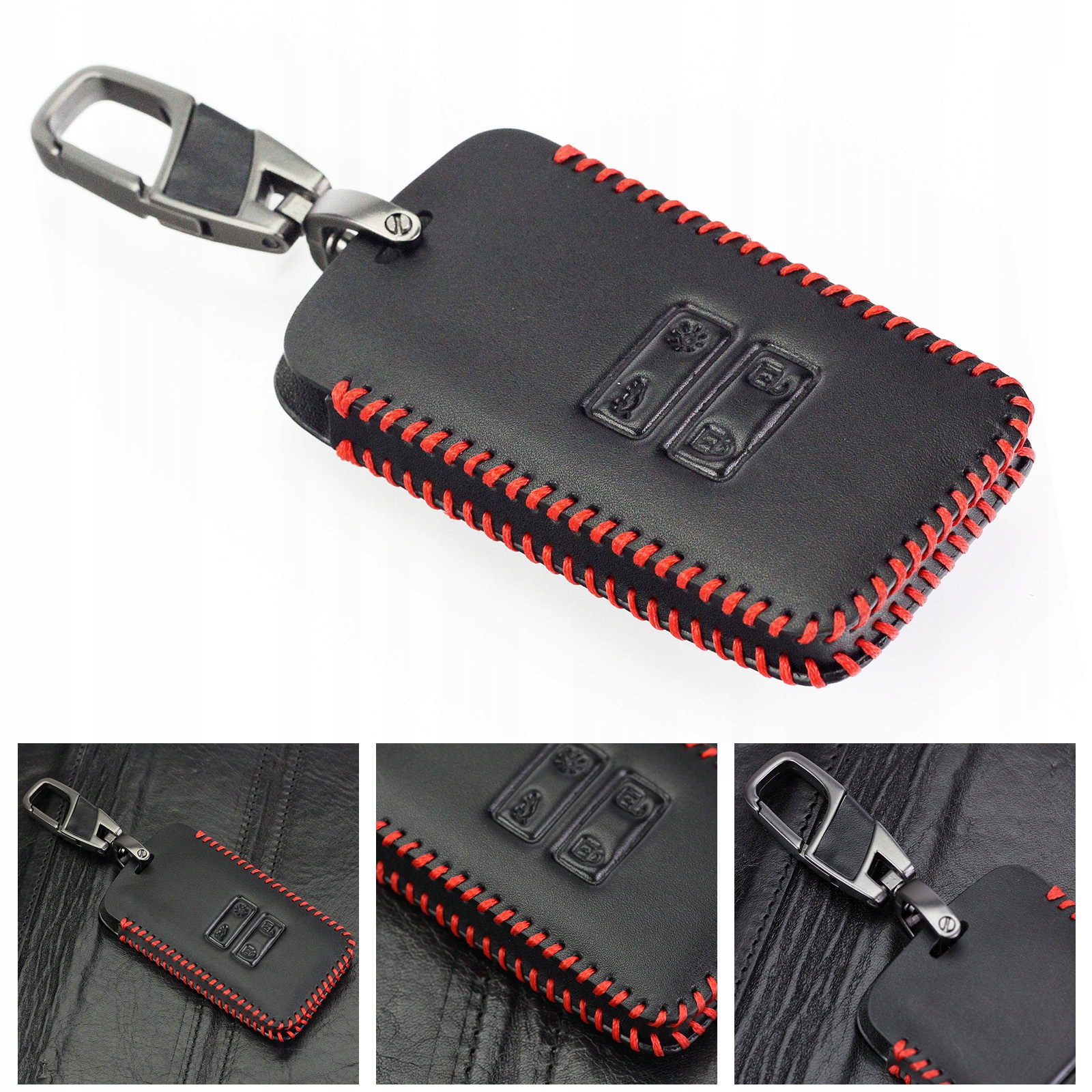 Мы предлагаем футляры ручной работы, подходящие для ключей всех марок и моделей легковых автомобилей и не только. Ключи изготовлены из натуральной черной кожи, прошиты толстой красной нитью.Каждый футляр оснащен практичным стальным карабином, покрытым лаком цвета титана.