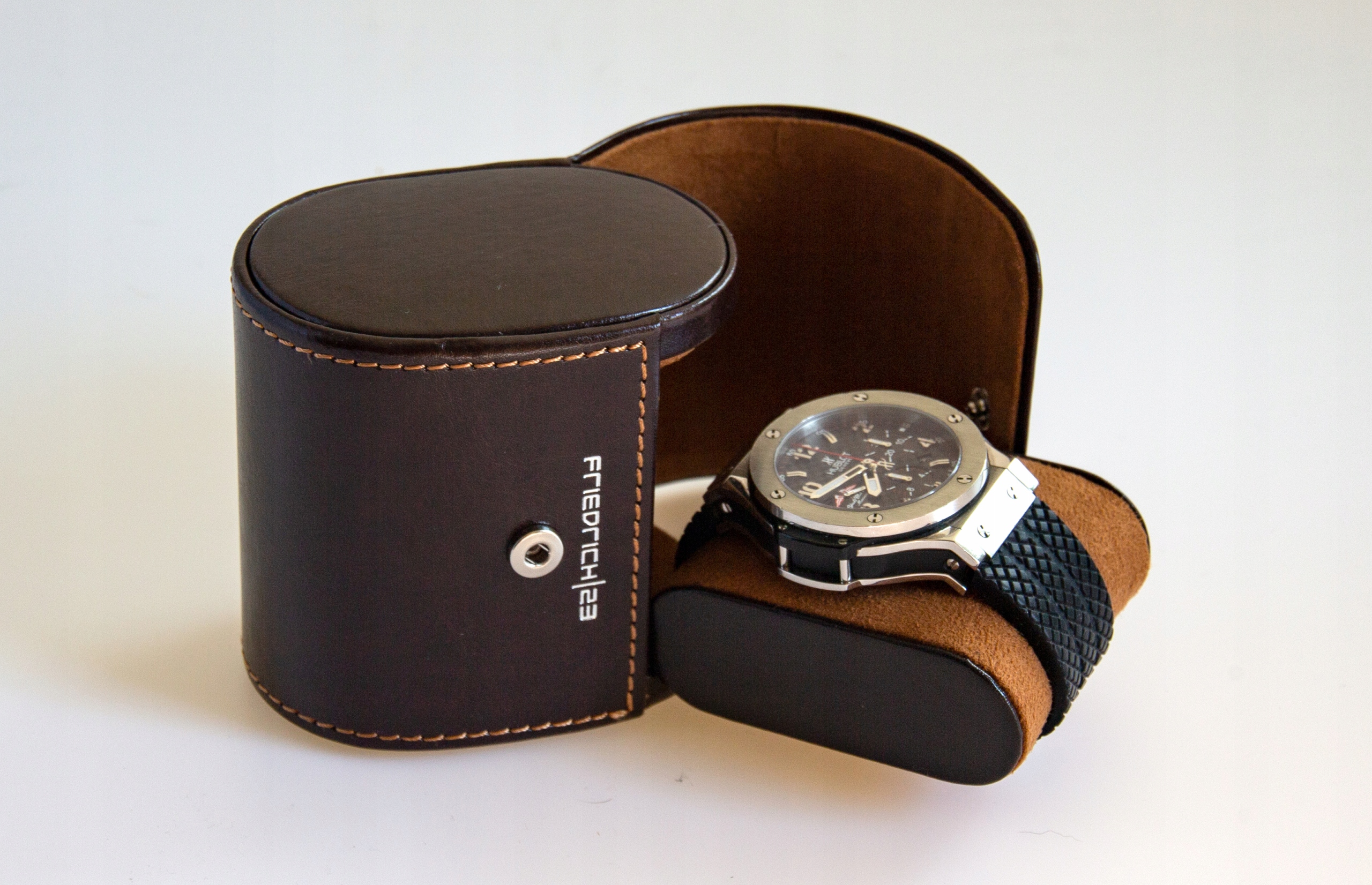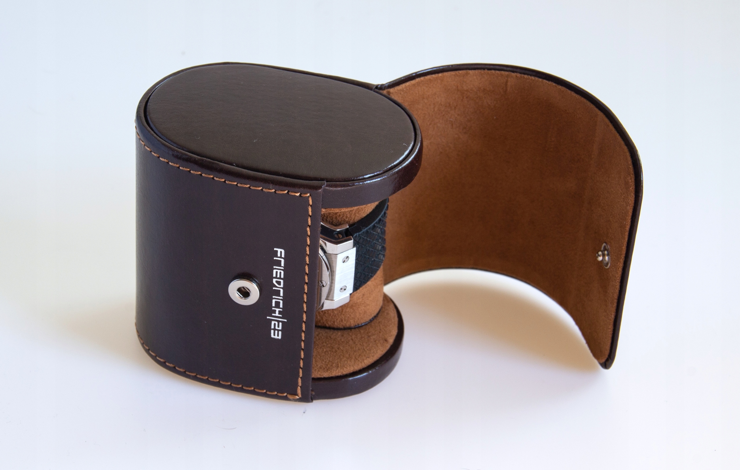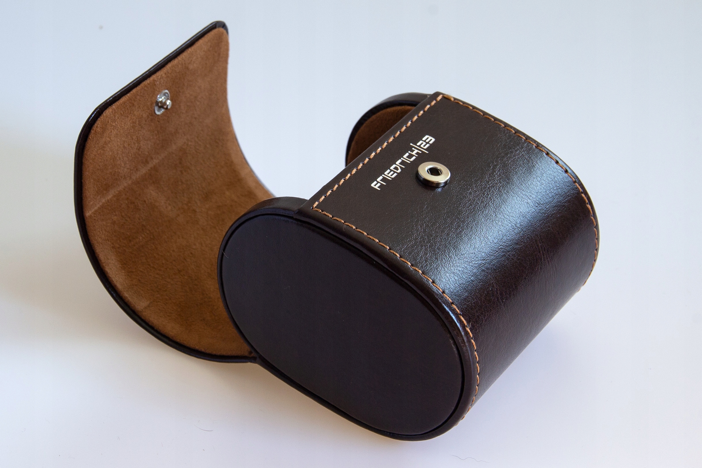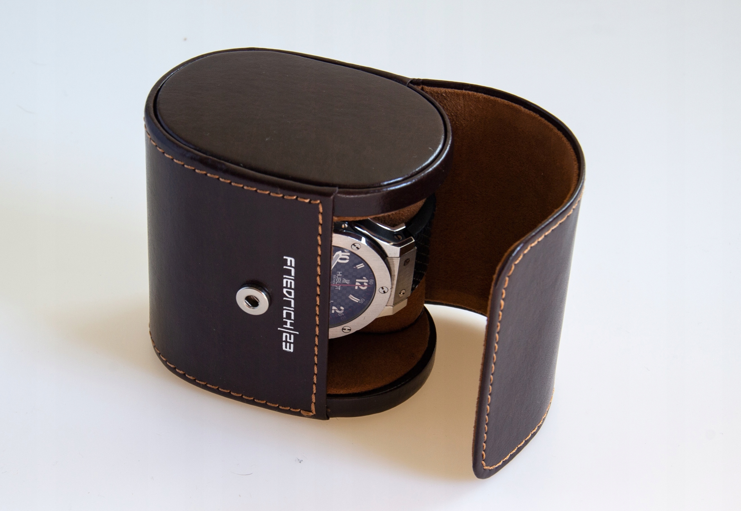 Кожаный дорожный футляр для 1 часов «Бонд». Темно-коричневый. Продукт очень хорошего качества. Ручная работа: предельно тщательно и с большим вниманием к деталям. Сделано в Германии – Фридрих/23. Он также подходит для очень больших часов (диаметр 60).