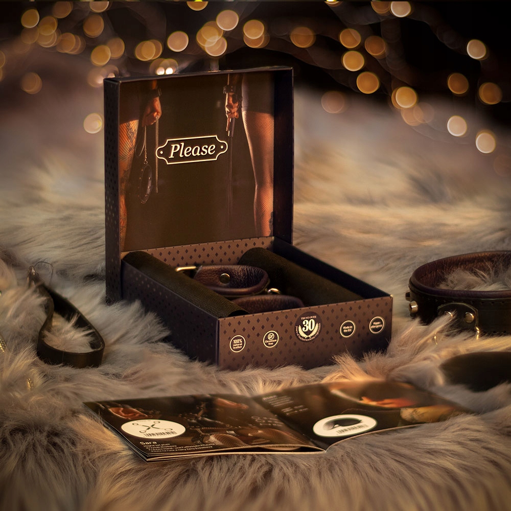 В комплект входит кожаный крестик, наручники для рук и ног: