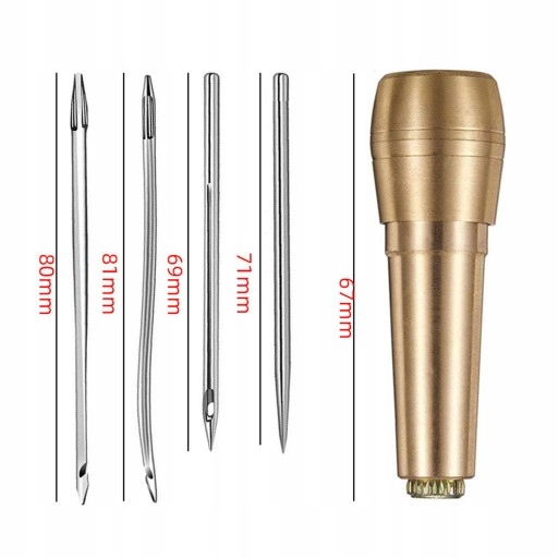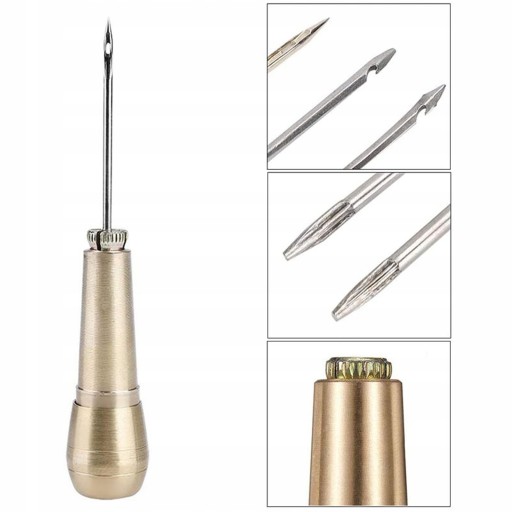 Уникальное медное швейное шило с металлической ручкой и иглами разных размеров