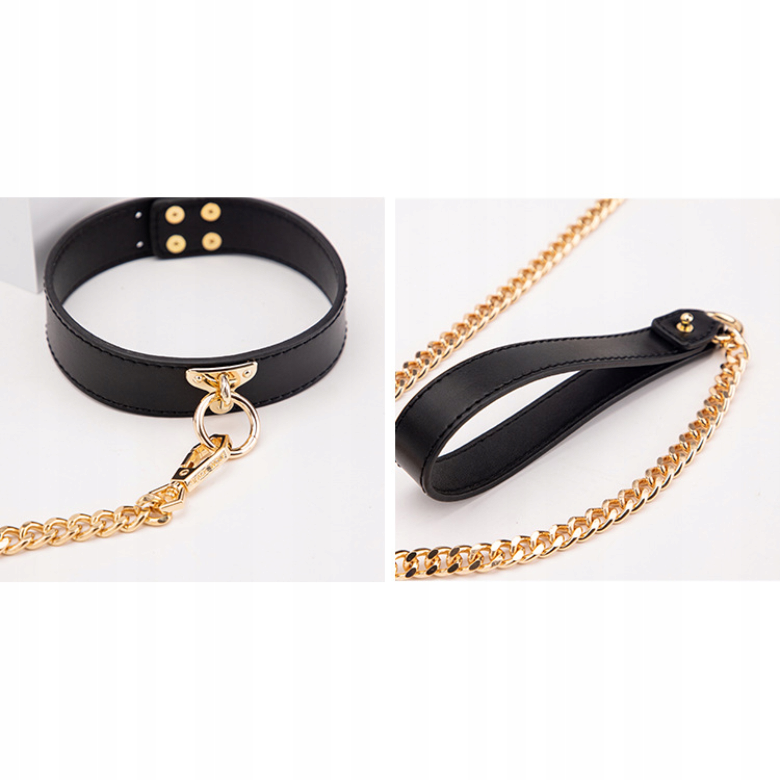 КОЖАНЫЙ КЛАССИЧЕСКИЙ ОШЕЙНИК ПОВОДОК БДСМ-ПРОВОДОК ЧОКЕР ЗОЛОТАЯ ЦЕПЬ